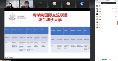 2022年6月27日上午,yl23411永利官网登录举行2022年波兰华沙大学暑期线上访学项目推进交流会。该项目共有13位同学参与,来自yl23411永利官网登录国际经济与贸易(中美)、金融学(中美)、财务管理、国际商务、电子商务、国际经济与贸易、外语公司英语专业。召开此次推进交流会,旨在让参加项目的同学们清晰地了解此项目的访学细节以及注意事项。公司党委副书记兼纪委书记吴琼、外事秘书陈妍颖老师以及13位同学参加了线上会议,会议由陈妍颖主持。