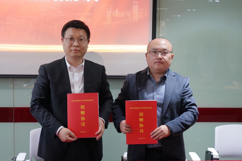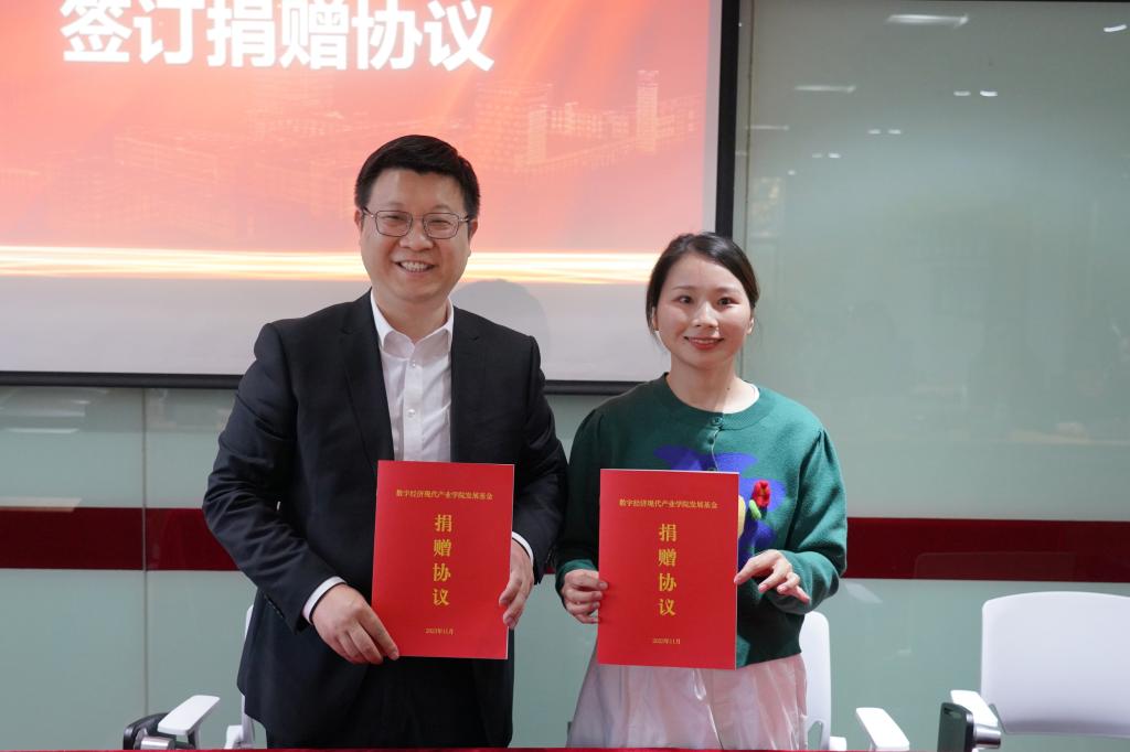 马翔书记与入驻企业签订数字经济现代产业公司发展基金捐赠协议。