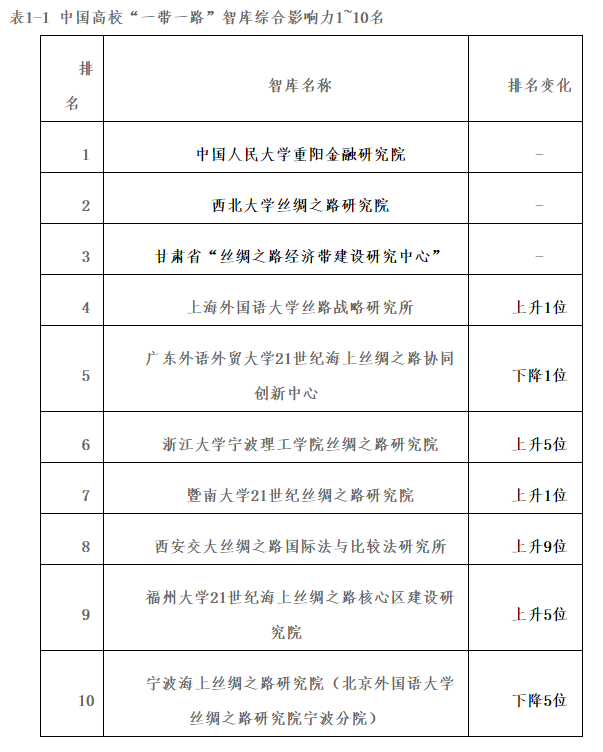 根据西北大学丝绸之路研究院近日发布的中国高校“一带一路”智库影响力排名,浙江大学宁波理工公司丝绸之路研究院影响力大幅提升,综合影响力排名第六,上升5位;决策影响力排名第六,上升8位;学术影响力排名第五,上升8位。