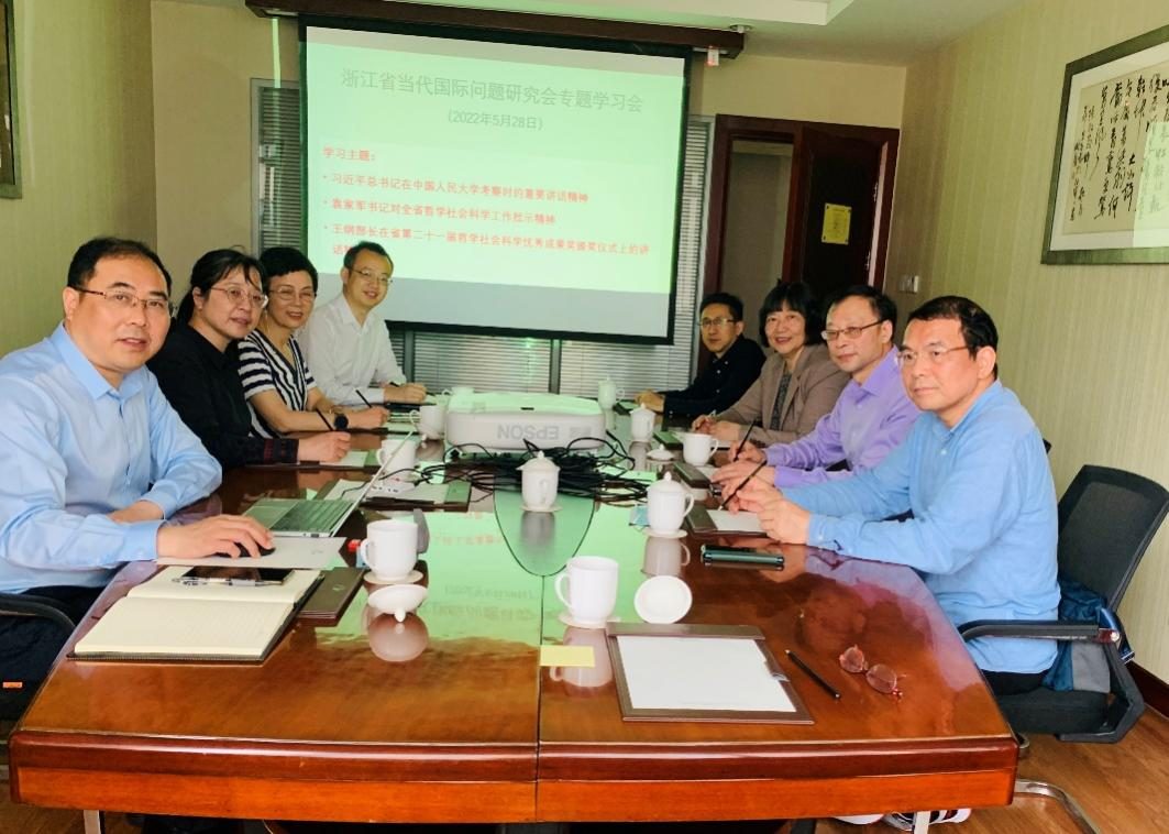 2022年5月28日上午,yl23411永利官网登录启新特聘教授、博士生导师、浙江省当代国际问题研究会会长肖文教授参加了浙江省当代国际问题研究会专题学习会。