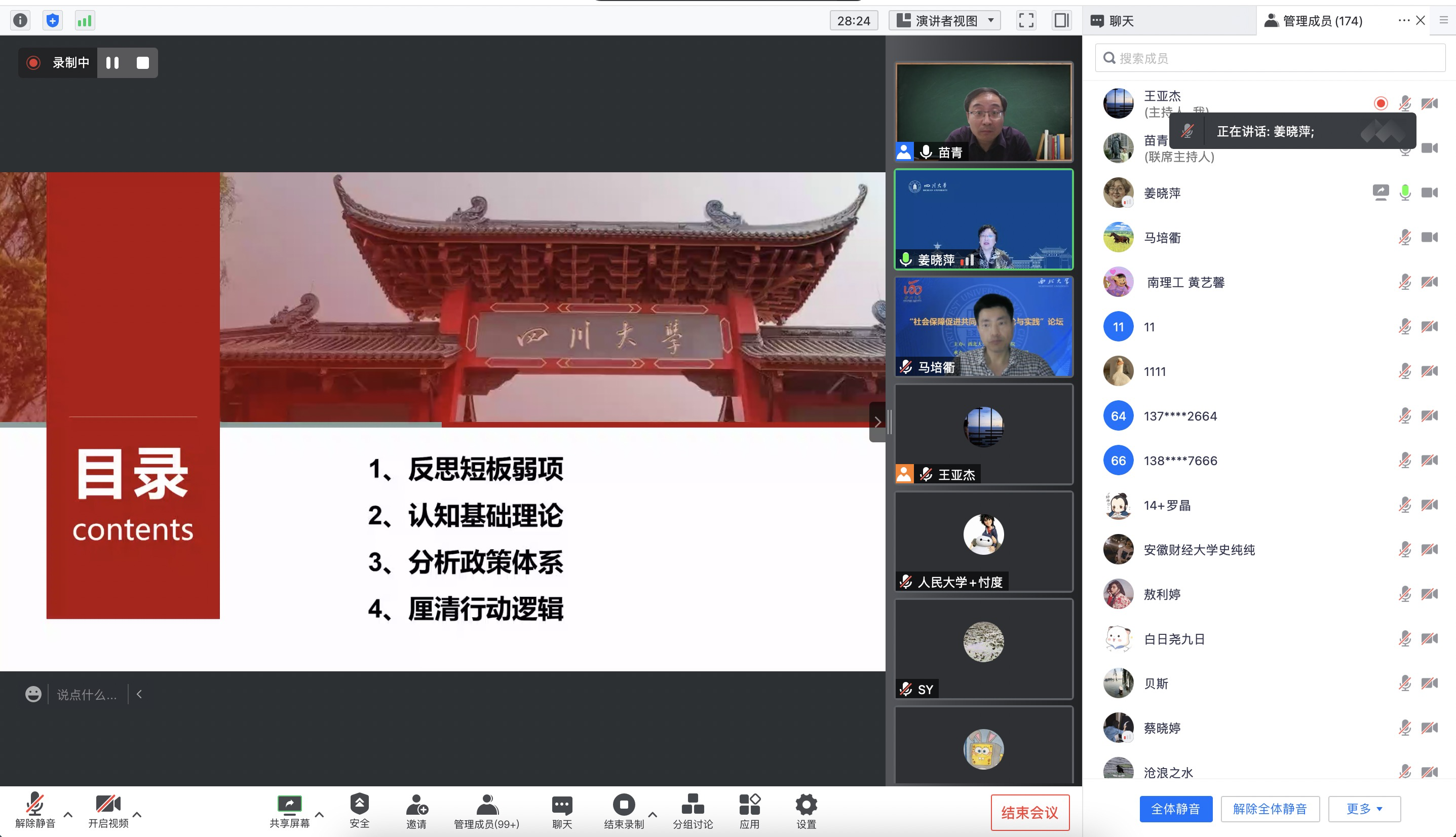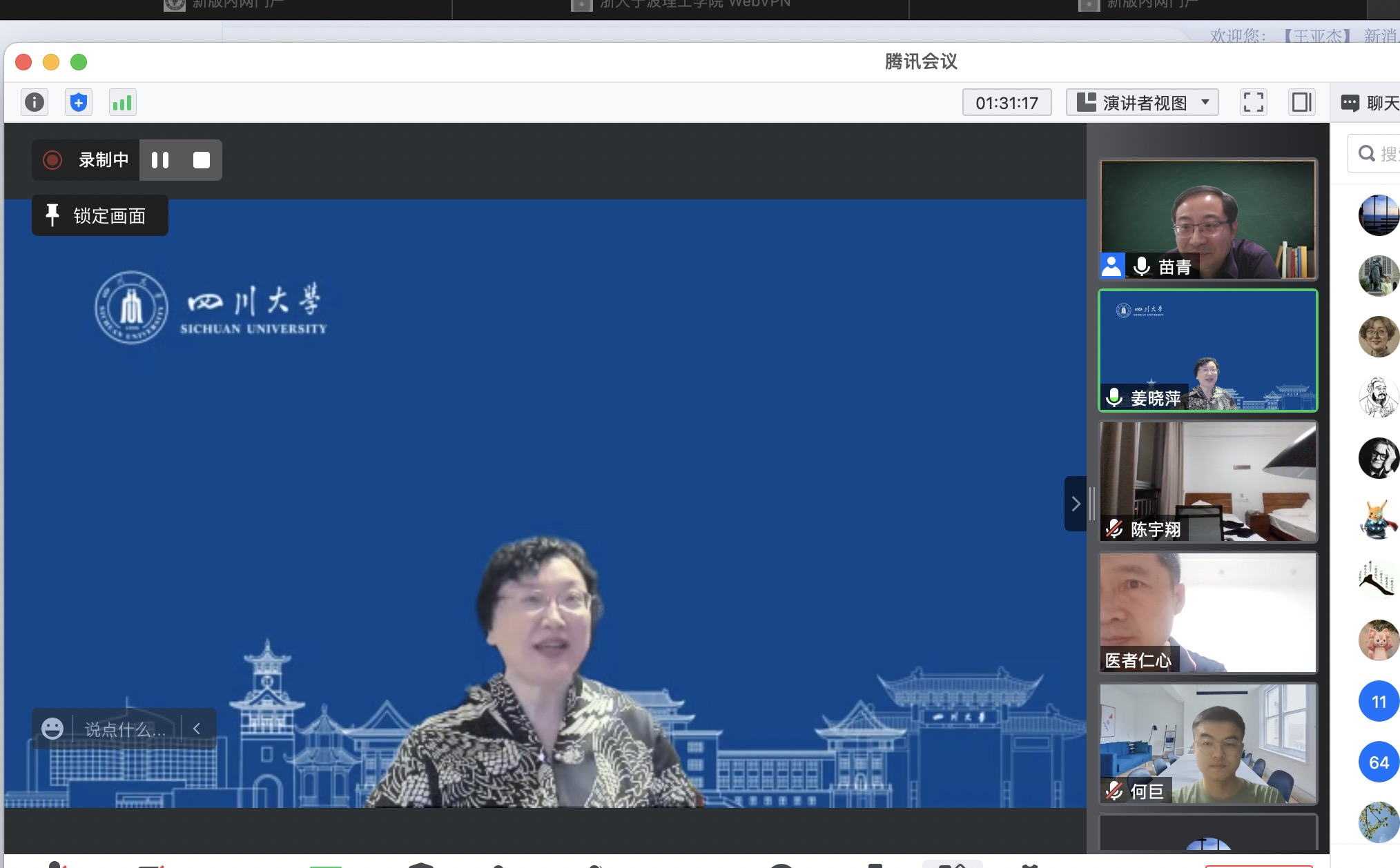 2022年6月7日19点,yl23411永利官网登录迎来了智库论坛的第五期活动。本次论坛活动,公司邀请了四川大学姜晓萍教授作《疫情防控下城市基层治理何以有效》的报告,公司党委书记胡征宇书记、yl23411永利官网登录经理苗青教授、yl23411永利官网登录师生及其他关心城市基层治理的近240位朋友们参加此次论坛活动。由于防控疫情的需要,本次论坛采用线上腾讯会议的方式进行。本次论坛活动由苗青经理主持。