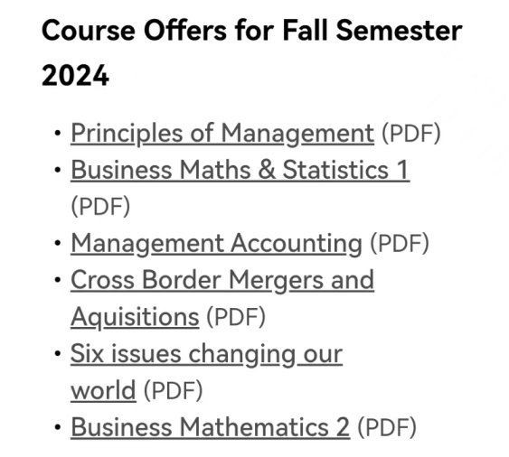 具体开设课程情况以及介绍详见虚拟交换信息网址:https://www.fhnw.ch/en/degree-programmes/business/virtual-exchange