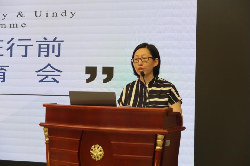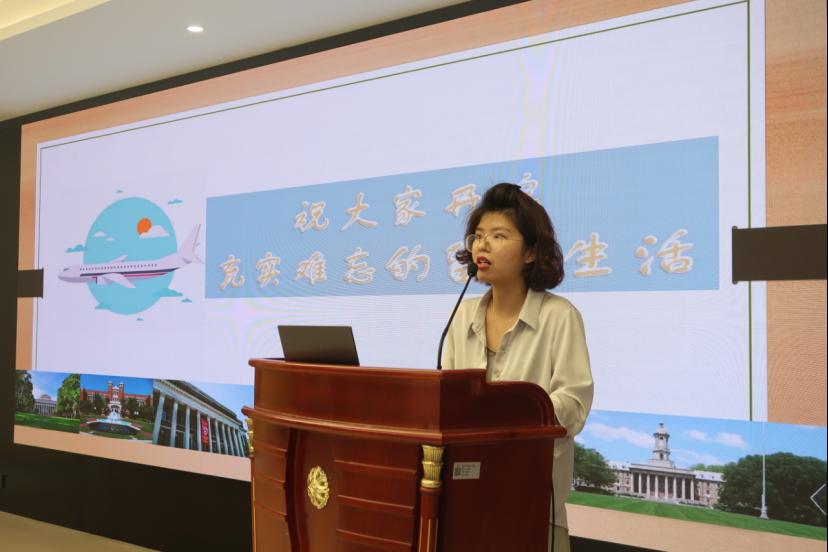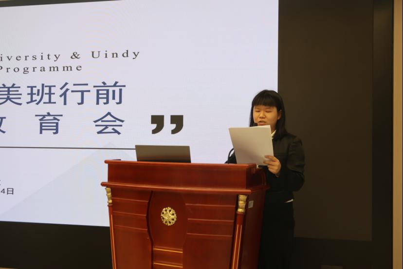吴琼老师以中美班20年取得的成绩为切入点,表示一路上看到了大家的成长与蜕变:作为中外合作项目员工,一路上既充满挑战,又充满机遇,期待看见大家未来更高的成就。她还对同学们提出了几点期望,一是要做好赴美学习计划,提前做好全英文生活学习环境的转变,为后续尽早适应在美学习打好基础;二是要保障安全,保持集体行动,同学之前要互帮互助,也要紧密和公司老师、美方老师保持联系;三是希望同学们记牢自己理工身份,遵守当地法律法规,做好传播中国文化交流的使者。