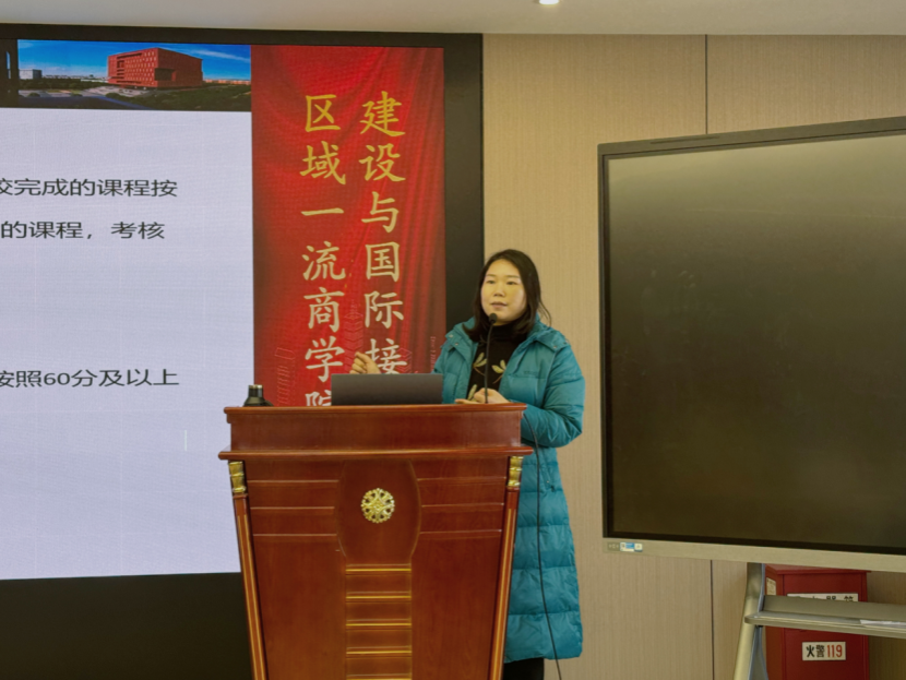 励呈仪老师详细解读了中美班在学籍管理规定和毕业、学位资格审核方面的要求,系统介绍了下学期赴美申请的要求、流程及注意事项,鼓励员工强化英语语言学习,尽早做好相关准备,为顺利赴美学习打下坚实的基础。