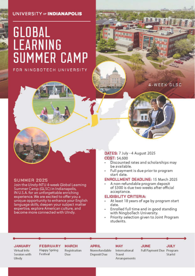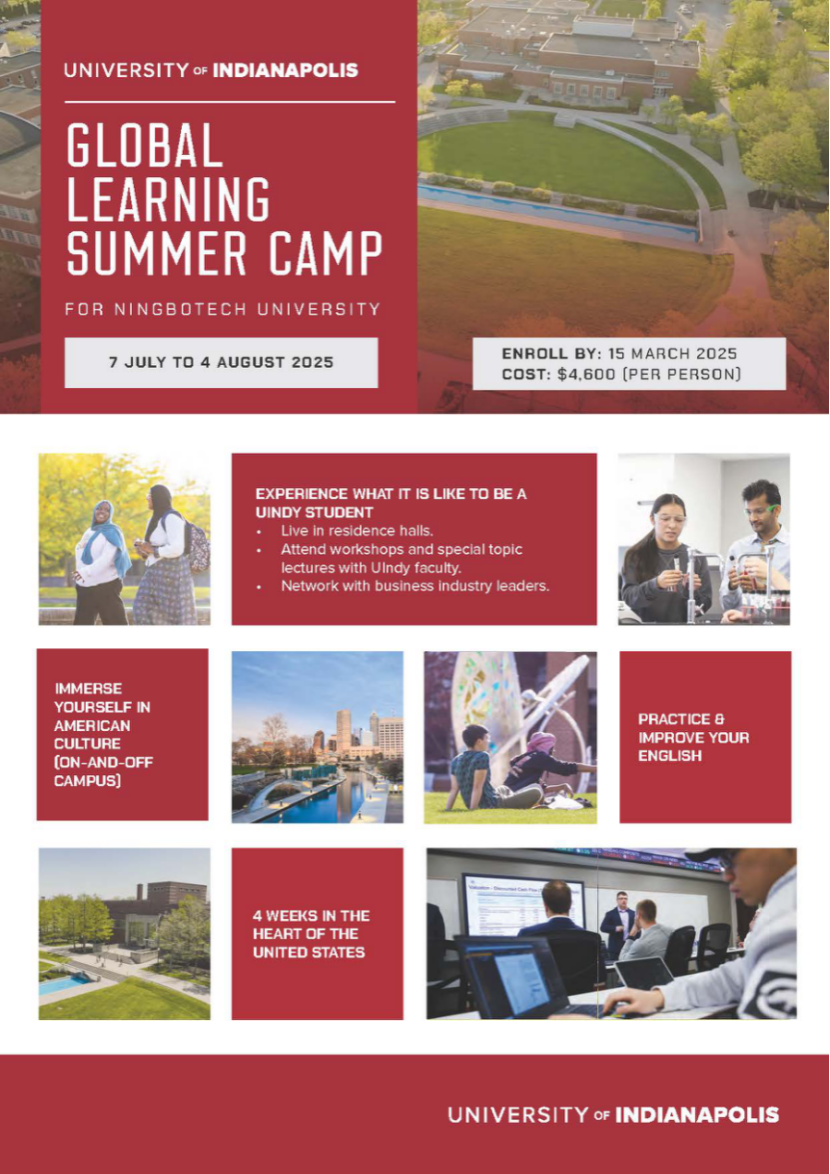 参加美国印第安纳波利斯大学为公司定制了为期4周的暑期夏令营,帮助同学们收获难忘的丰富体验,提高英语语言技能,深化专业知识,探索美国文化。
