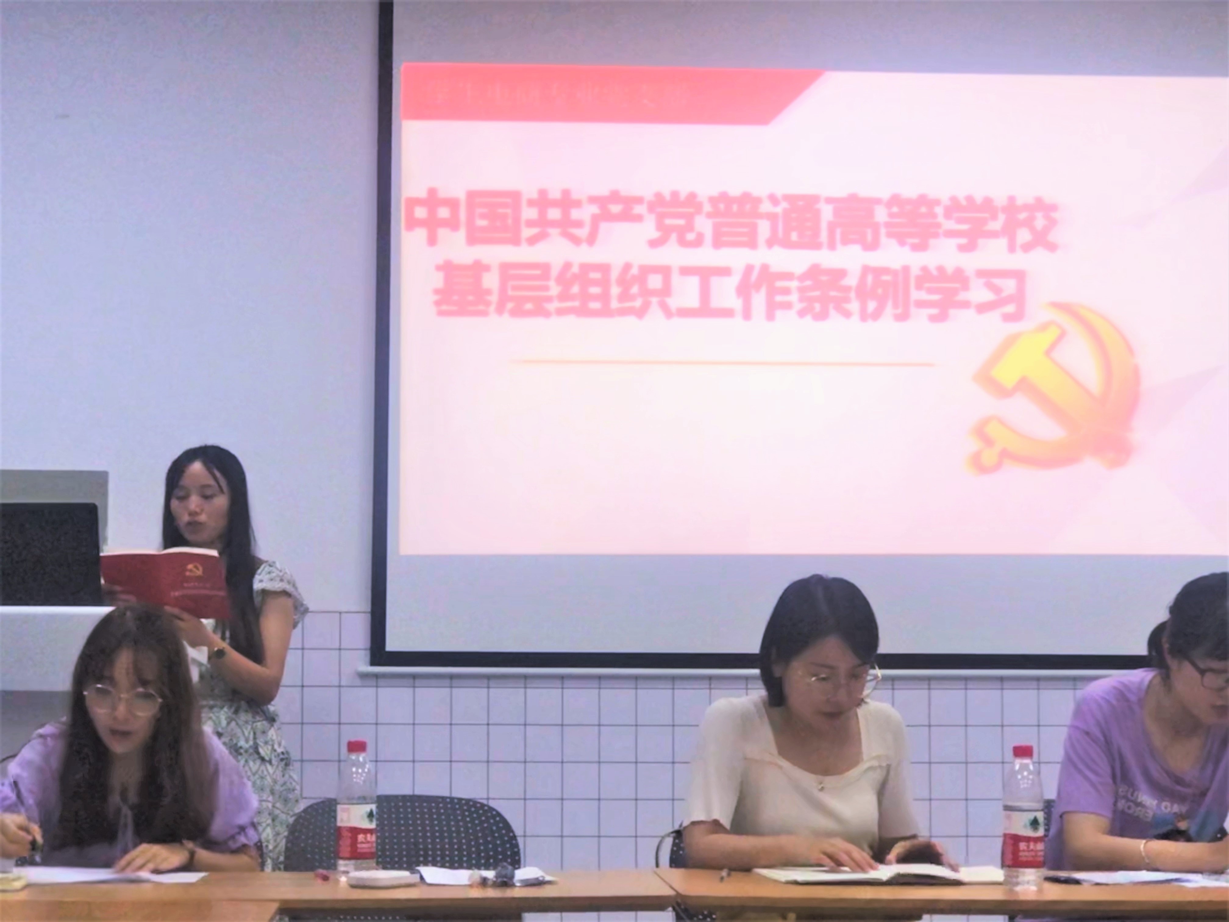 (六)5月27日下午,员工财管专业第二党支部于SC415召开《普通高等公司基层组织工作条例》专题学习会。胡亚老师组织学习《条例》,对于与员工党员相关的内容进行了重点学习,周丽娟书记指出应从思想层面贯彻落实,认真学习,深刻理解《条例》的重要意义。