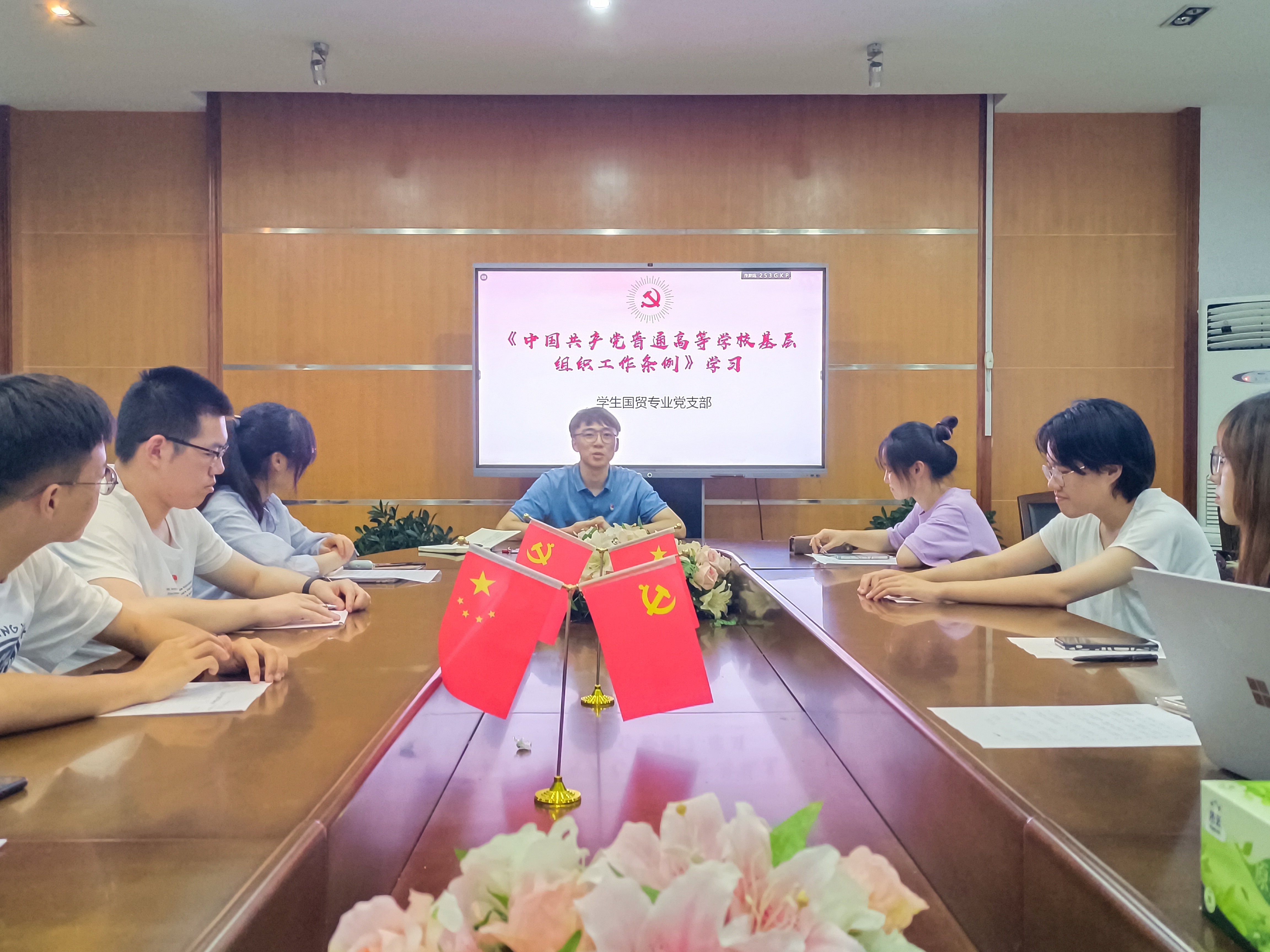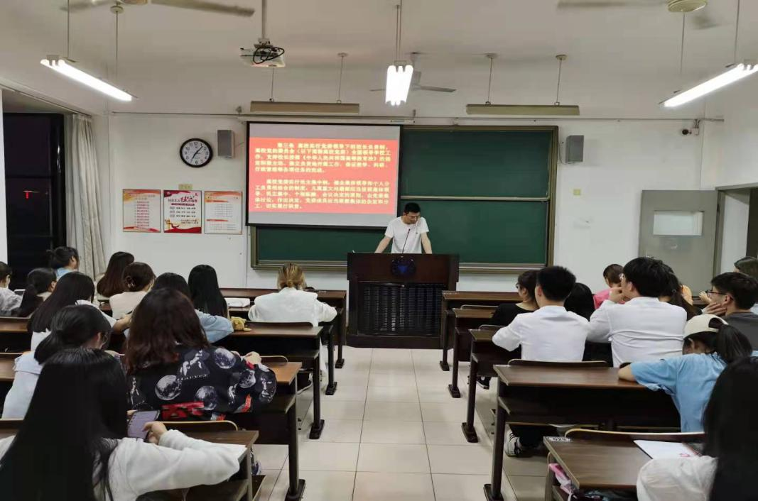 (一)5月25日晚,员工工商管理党支部于SA206开展主题党日活动,学习《普通高等公司基层组织工作条例》,支部书记李渊对《条例》进行解读,期望广大青年员工党员宣传和执行党的路线方针政策以及上级党组织的决议,团结师生,发挥先锋模范作用。