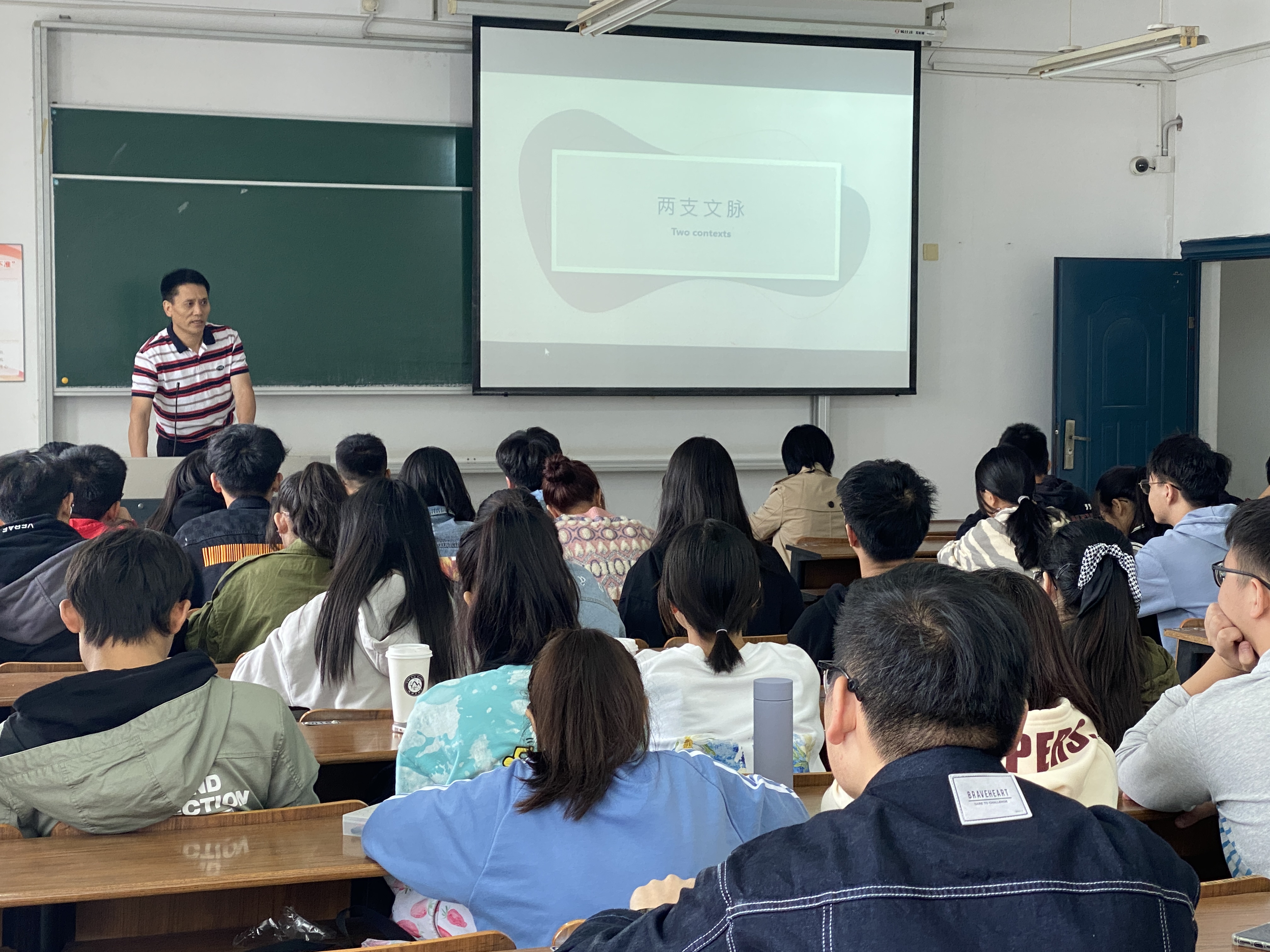陈斌老师从求是创新的浙大精神和经世致用的浙东文化两支文脉,向同学们介绍了公司校标校训的精神内核,分析了校园文化景观的蕴含的文化内涵,普及了“绿色风”、“行走的新闻”等校园文化品牌。在讲到校园爱心文化时,陈老师和同学们分享了自己亲身经历的由爱心基金衍生出的感人的育人故事,引起了在场师生的共鸣。最后,陈老师表达了校园文化“全员传承、外化于行、内化于心、守正创新”的愿景使命,寄语同学们不负青春、不负韶华、不负时代,争做有为青年。