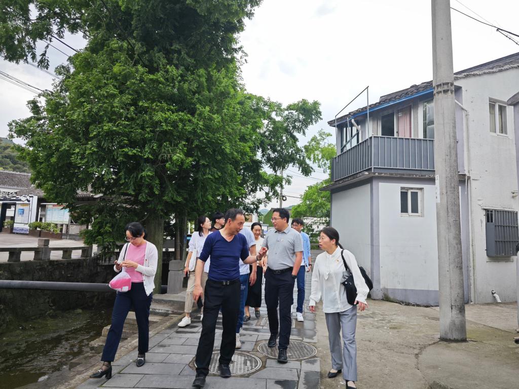 当天下午,在洋山村党支部书记俞国宝和中国人民大学视觉创意设计师丛志强教授的带领下,一行人参观调研了洋山村的乡村建设情况和附近的旅游景观。在大嵩岭古道上,俞国宝书记介绍了当地的发展历程。洋山村位于宁波市鄞州区东钱湖镇,自然风光独特,农产品丰富。近年来,村民们依托当地自然资源和文化底蕴,积极探索乡村旅游景点和农产品销售的新模式,逐渐走上了乡村振兴的康庄大道。此外,洋山村致力于为村民营造更好的居住环境,在开展农村休闲旅游的同时,使村民能享受到社会发展的成果。