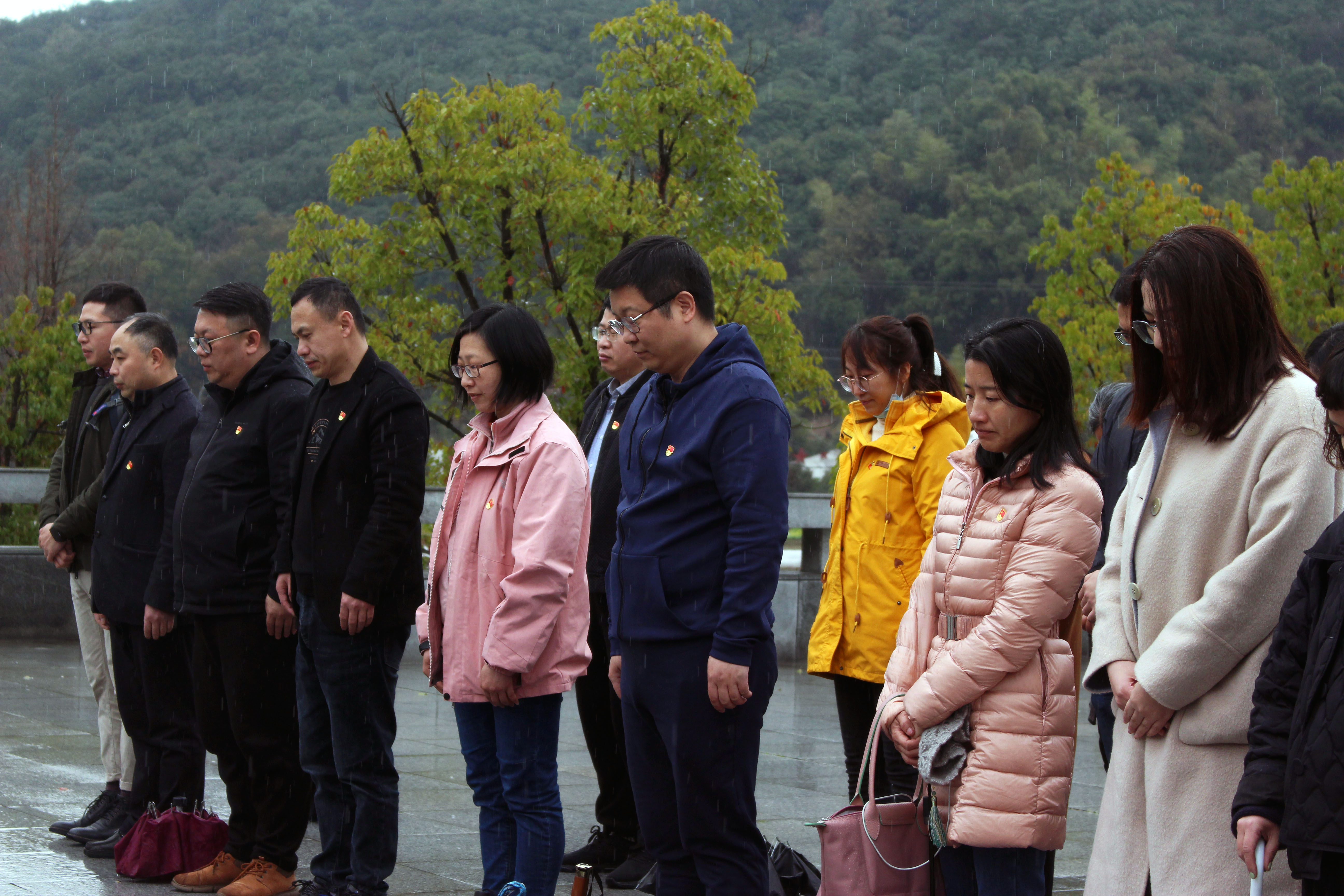 迎着涓涓细雨,红色之旅启程。到达芦浦村,公司师生首先瞻仰的是鄞州区英雄烈士纪念馆,顺着层层石阶砖拾级而上,烈士纪念碑巍然矗立于眼前,“英雄烈士永垂不朽”8个流光溢彩的大字分外醒目。这是为了纪念中国共产党领导下的宁波地区农民武装向国民党反动派打响的第一枪——罗浦暴动。参与革命的农民、渔民和盐民,与反动派在芦浦决一死战。冒着绵绵细雨,公司师生在烈士纪念碑前默哀,深刻缅怀烈士的英勇事迹,继承革命烈士的精神财富。