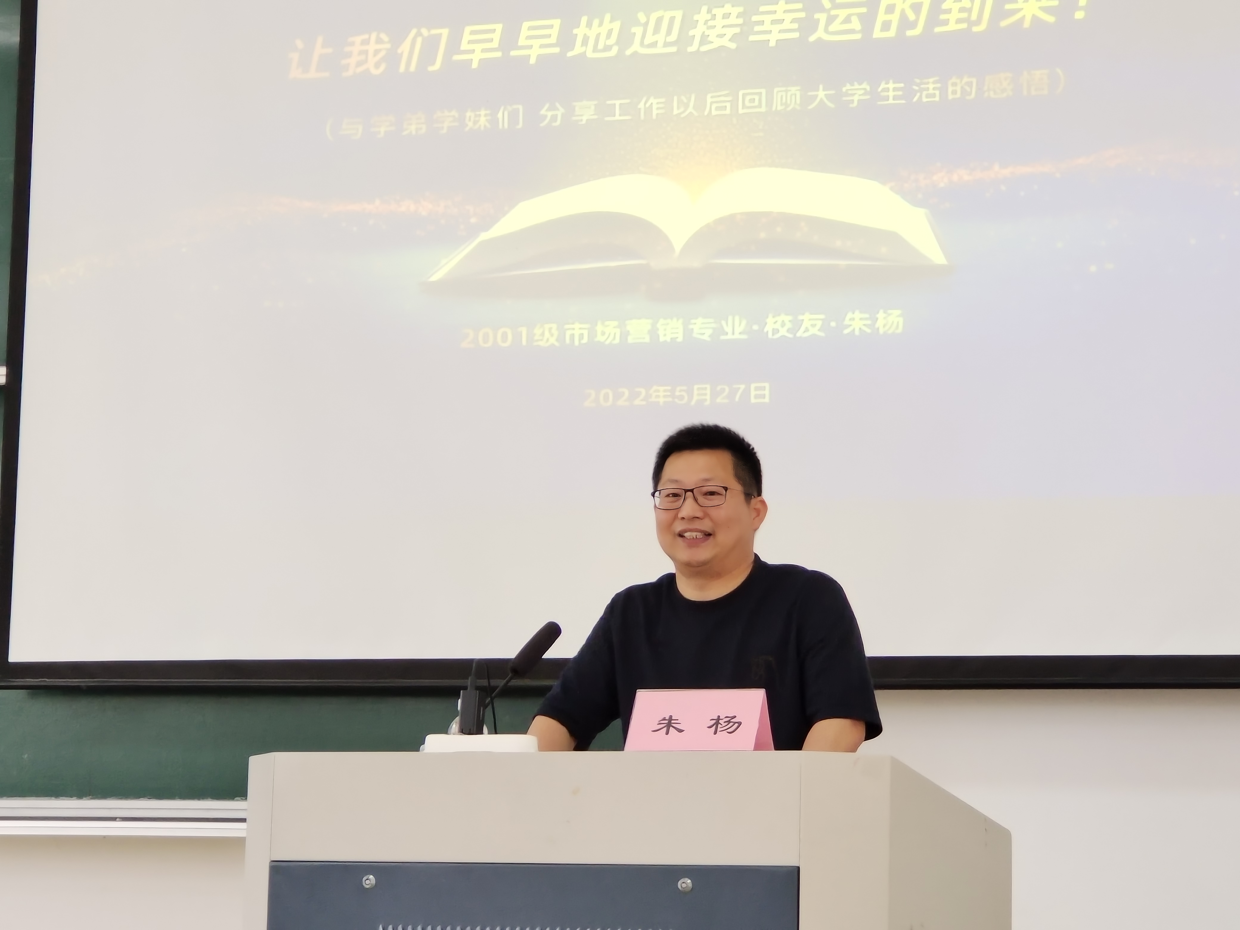揭牌仪式结束后,yl23411永利官网登录在NB104举行“商道·员工论坛”,朱杨员工为在校生带来了一场精彩的分享。他结合自身在校员工干部经历和创业经历,鼓励学弟学妹珍惜大学时间,学好专业知识;勇于创业,敢于尝试。最后他用一句话“让梦想大于畏惧,让行动强于语言,让我们早早地迎接幸运的到来”做结,与在场的员工共勉。