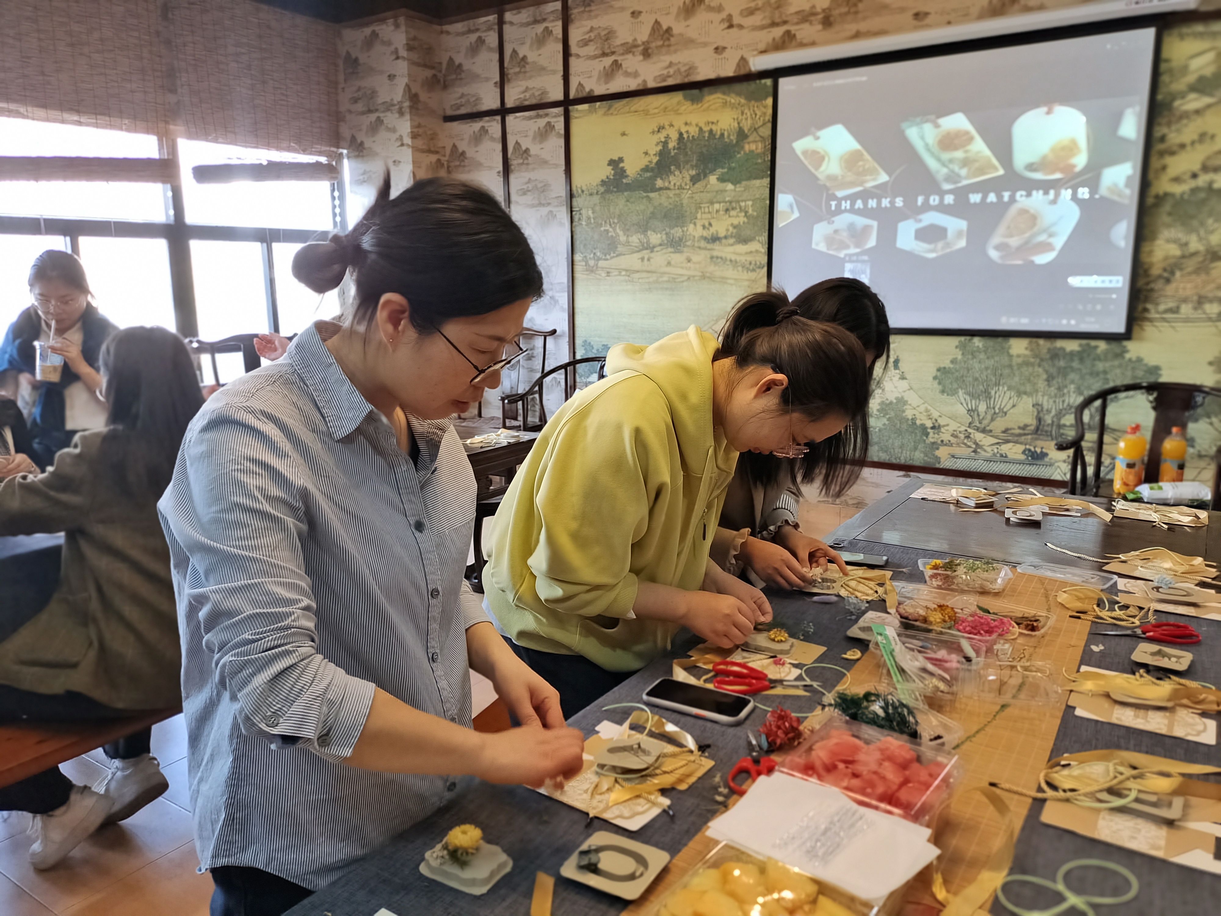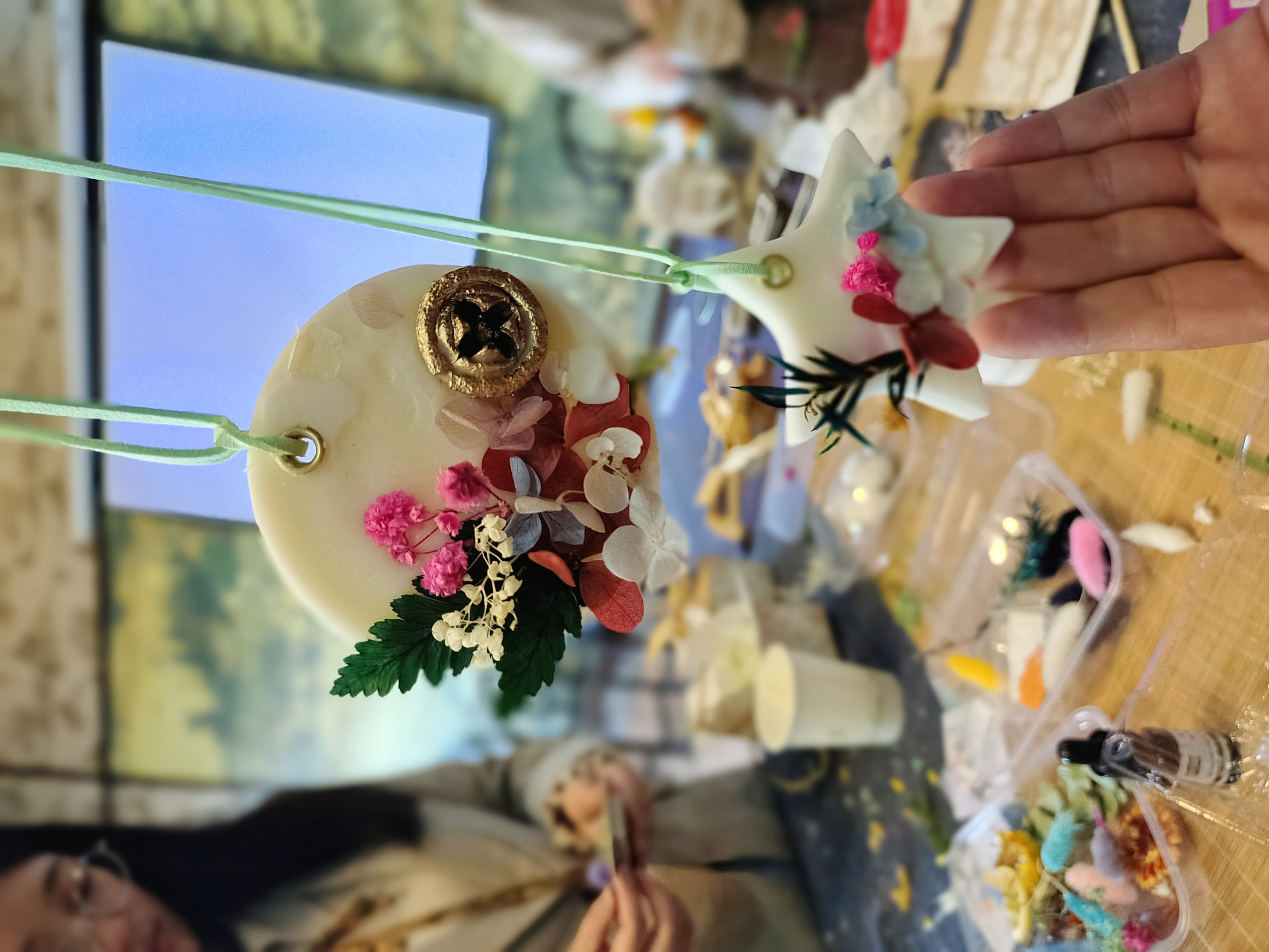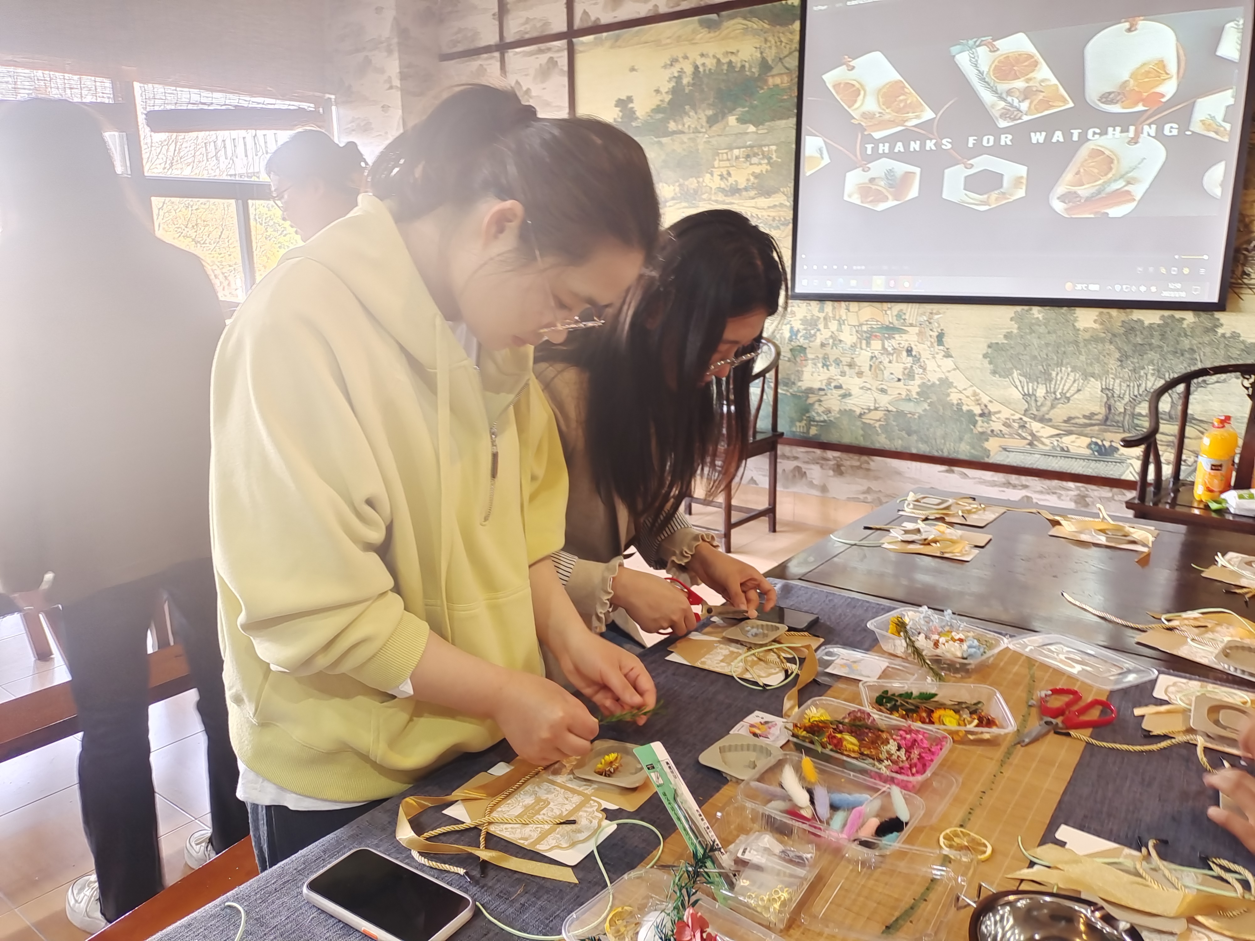 老师们举起自己手中系好丝带的蜡片,脸上满是开心的笑容。淡淡的香气在“工会小家”弥漫开来。这简单的小物件,让教工的业余生活变得更加生动和幸福。