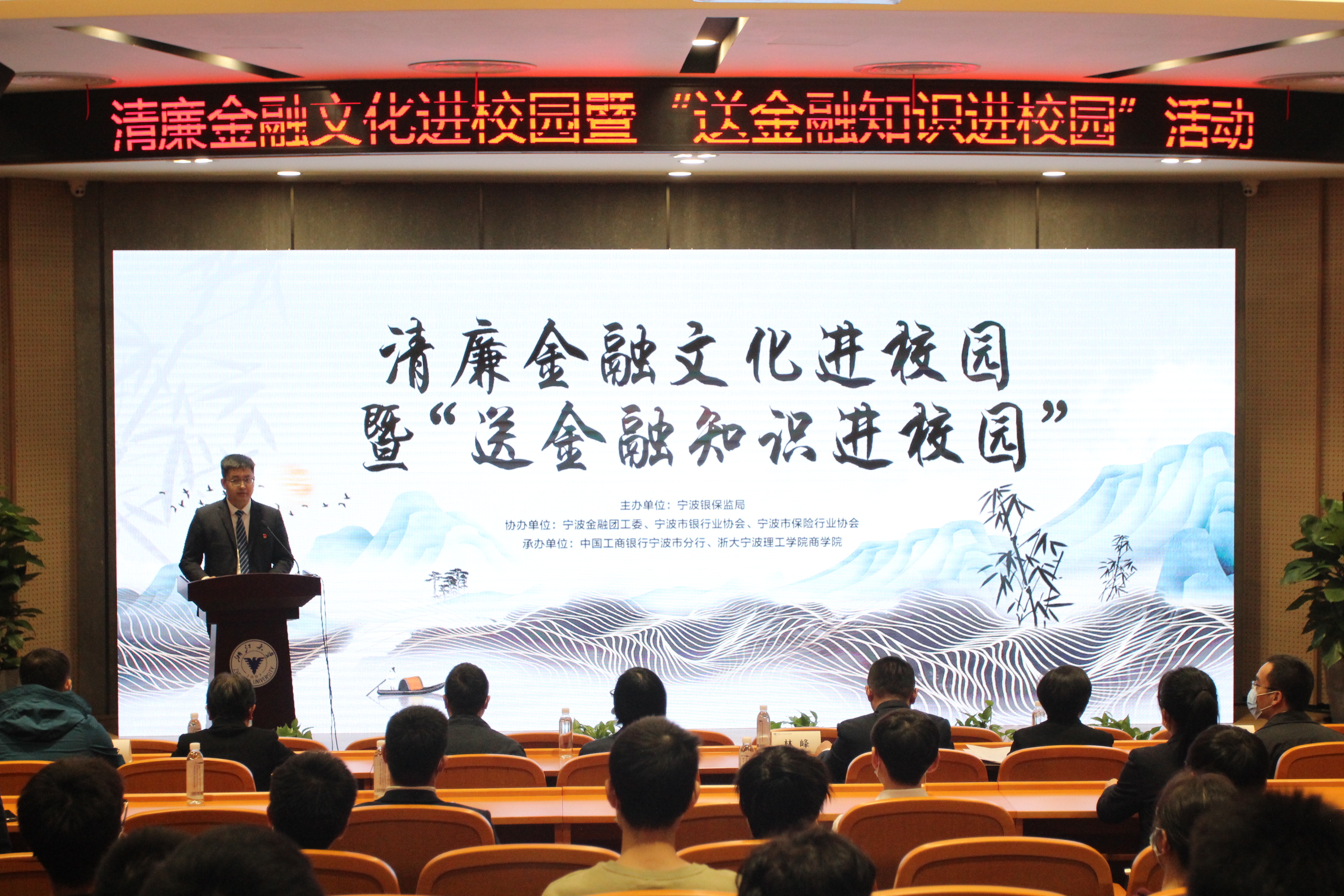 为赓续百年廉政文化精神,纵深推进清廉理工建设,宣传清廉金融文化,yl23411永利官网登录邀请了宁波银保监局等单位,于11月5日下午在启新大讲堂举办清廉金融文化进校园暨“送金融知识进校园”活动。