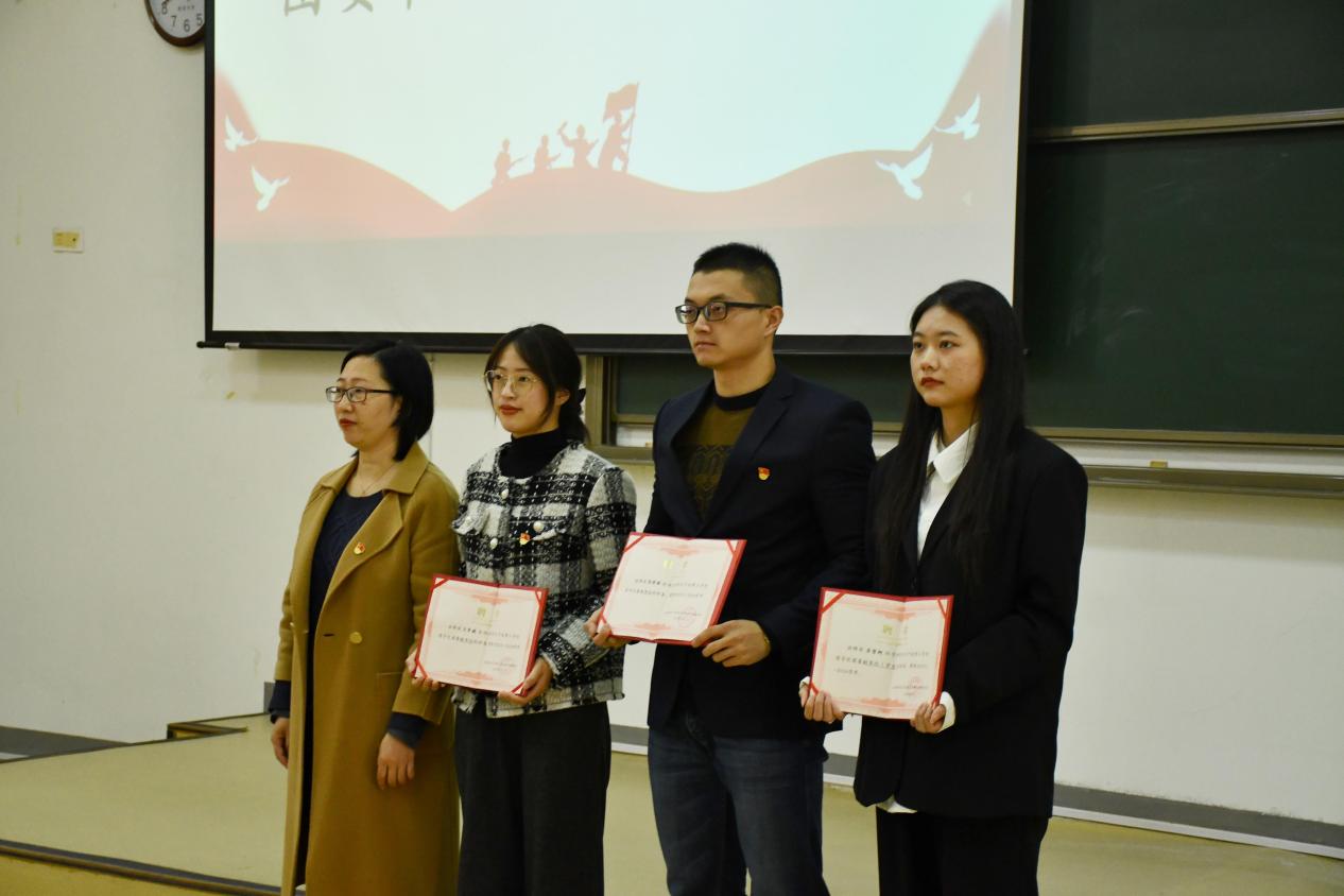 接着,yl23411永利官网登录思政副主管潘剑邦老师为“永远跟党走”青年宣讲团授旗,党员教育发展中心主席蒋刘悦同学作为代表上台。