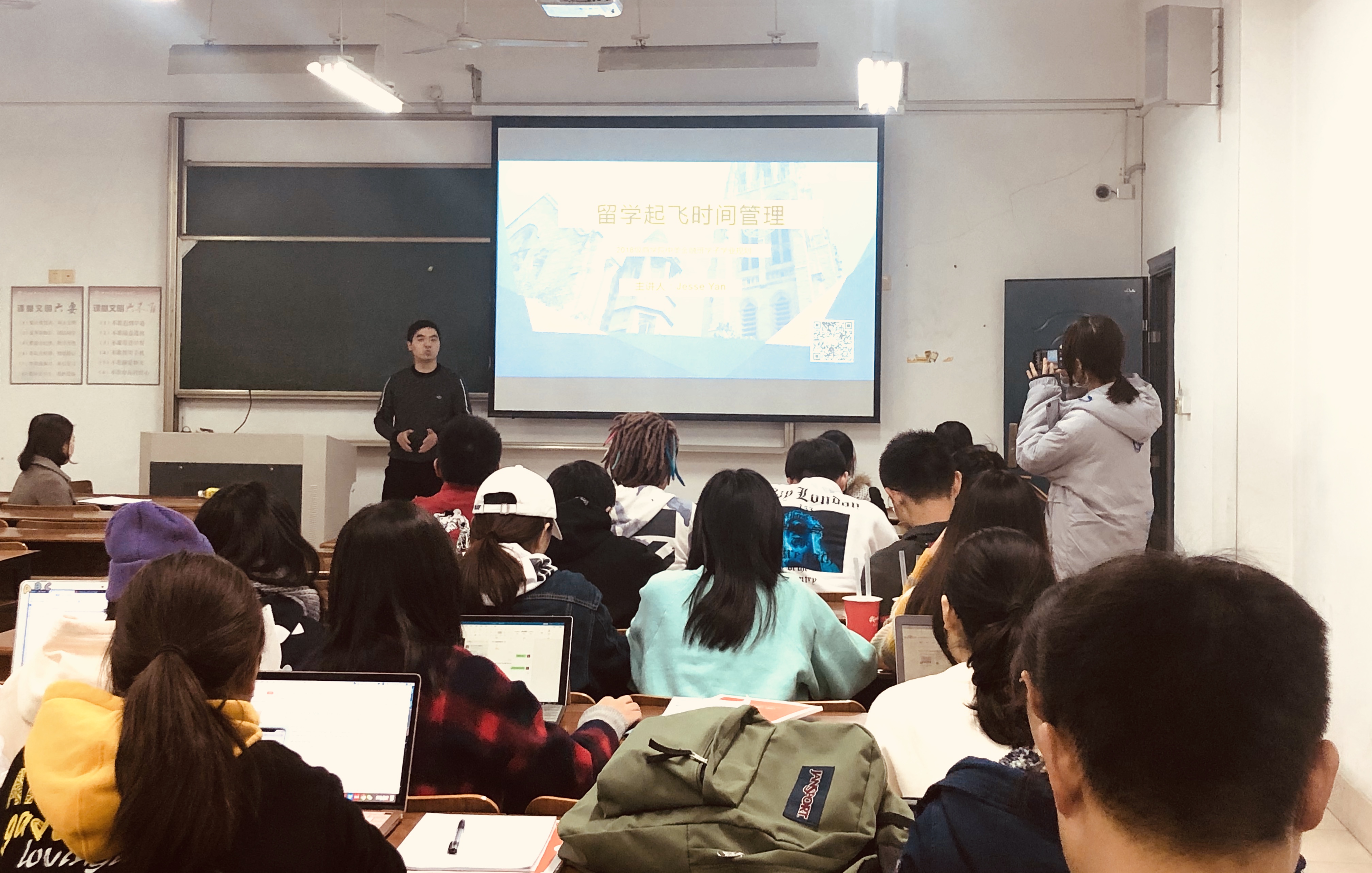 讲座中Nancy Pan老师首先从时间管理出发,通过实际案例分析,向同学们介绍了留学起飞的适宜时间,他从围绕过程管理结合留学标化考试指出同学们要在出国留学上把握时间节点,有效分配时间,做好留学前期各时间段的全过程管理;同时他向同学们分析了国内考研与海外留学在时间成本、机会成本、发展前景等方面的差异性,鼓励同学们理性做好留学准备工作。