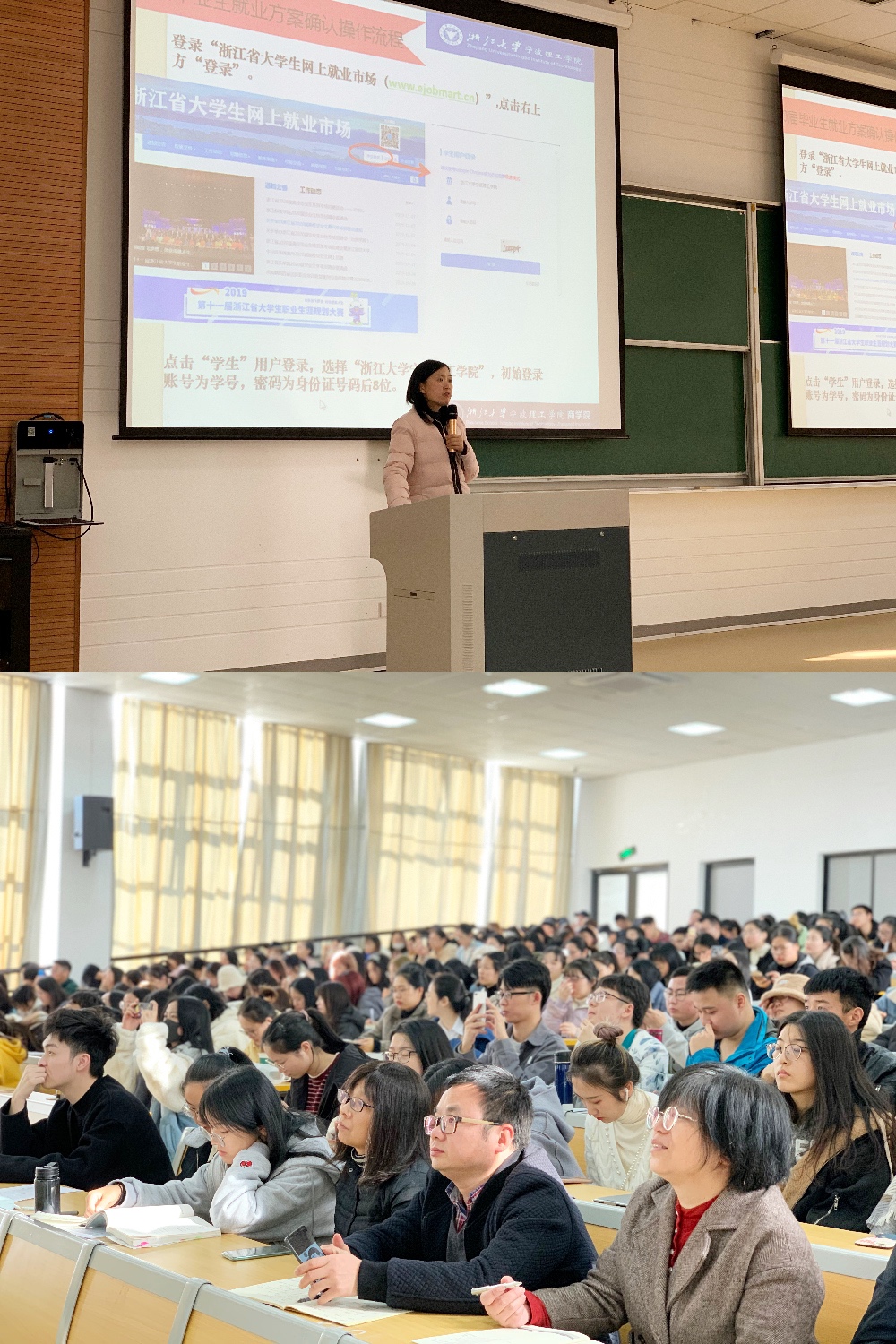 会上周丽娟老师向参会员工及老师汇报了公司2019届毕业生就业工作,她从就业总体概况出发分别介绍了公司2019届毕业生公务员录取、考研升学、就业创业等基本情况,并对2019届就业工作中存在的问题进行总结;随后,周丽娟老师向同学们重点介绍了三方协议签约、报到证、档案派遣等工作,并就相关工作的注意事项进行了提示。她指出公司高度重视员工就业工作,先后通过校企合作、院企合作模式拓宽同学们就业渠道,通过以专业学习促进专业能力提升为抓手,全面提高同学们就业核心竞争力,通过融合职业生涯规划课程、就业指导课程及简历制作等增强同学们就业工作的针对性、软实力。她在讲话中指出大学四年短暂即逝,希望同学们能够珍惜剩余大学时光,珍藏同学美好情谊,共同维系好室友情谊,积极参与到毕业生就业工作之中,用高质量就业彰显大学四年学习成果,会上周老师还对毕业生就业过程中出现的安全问题进行了教育和提示。