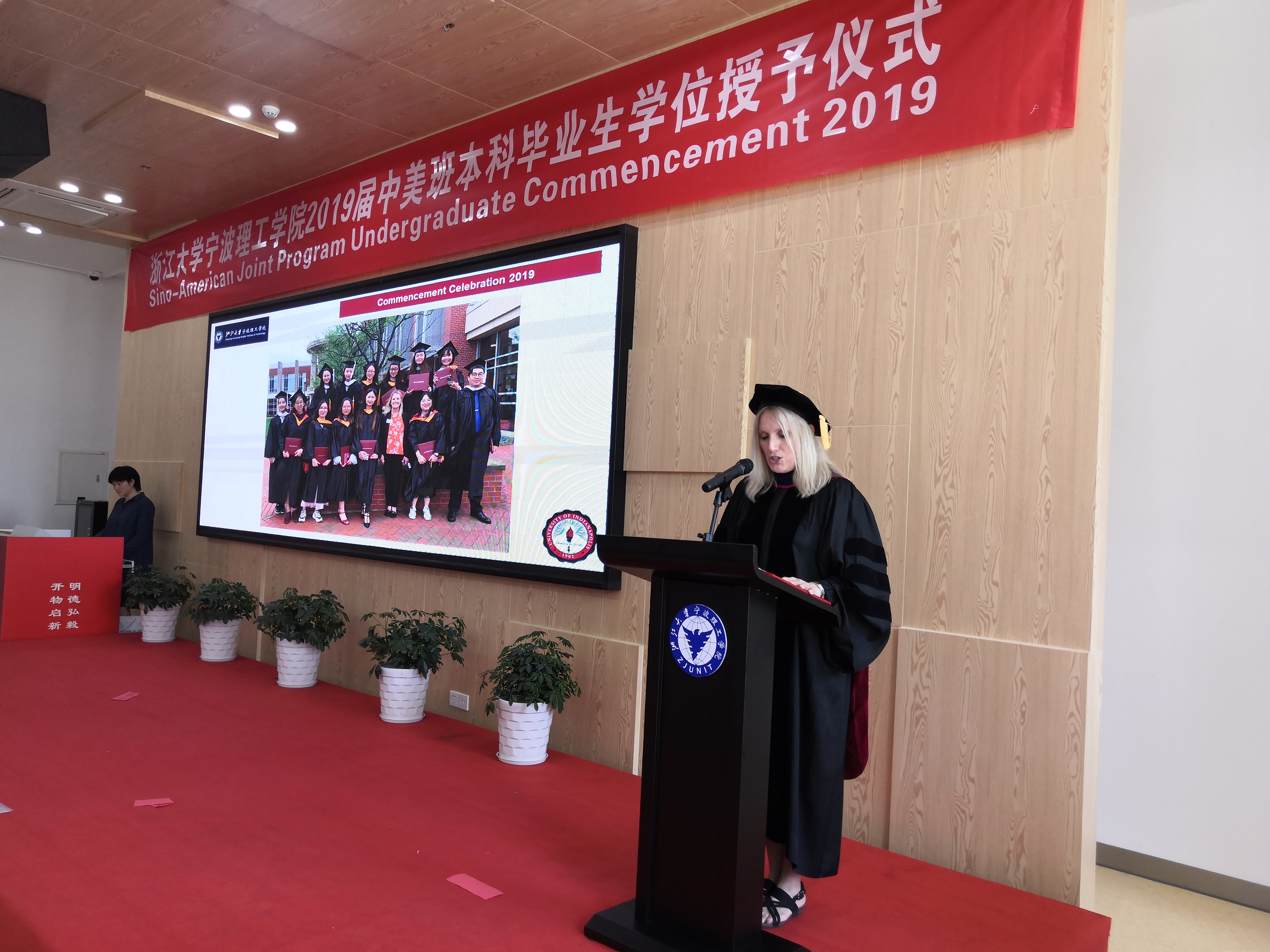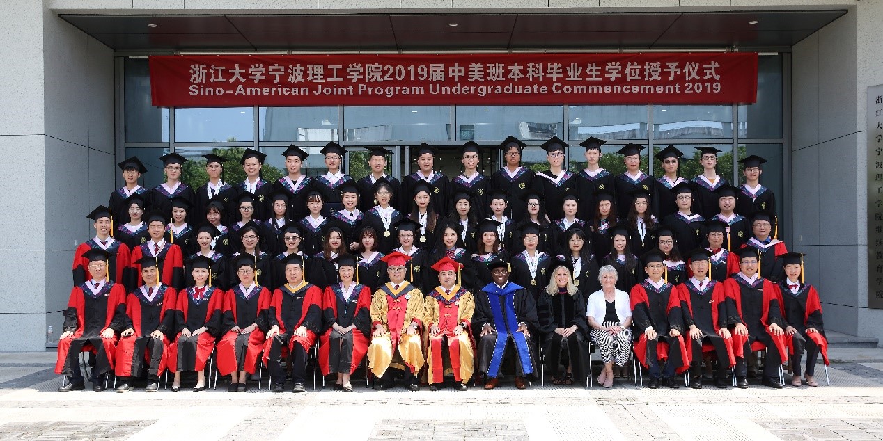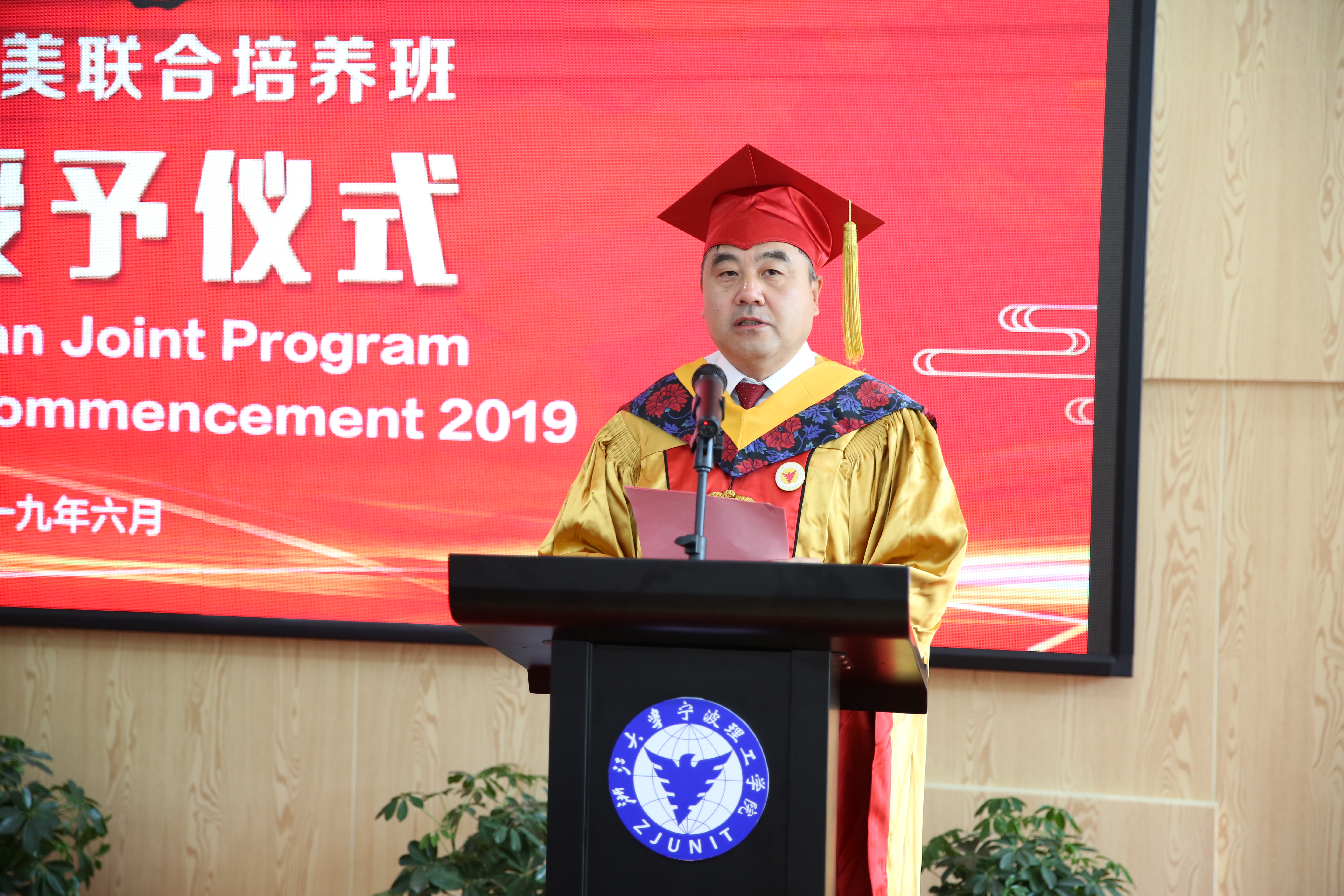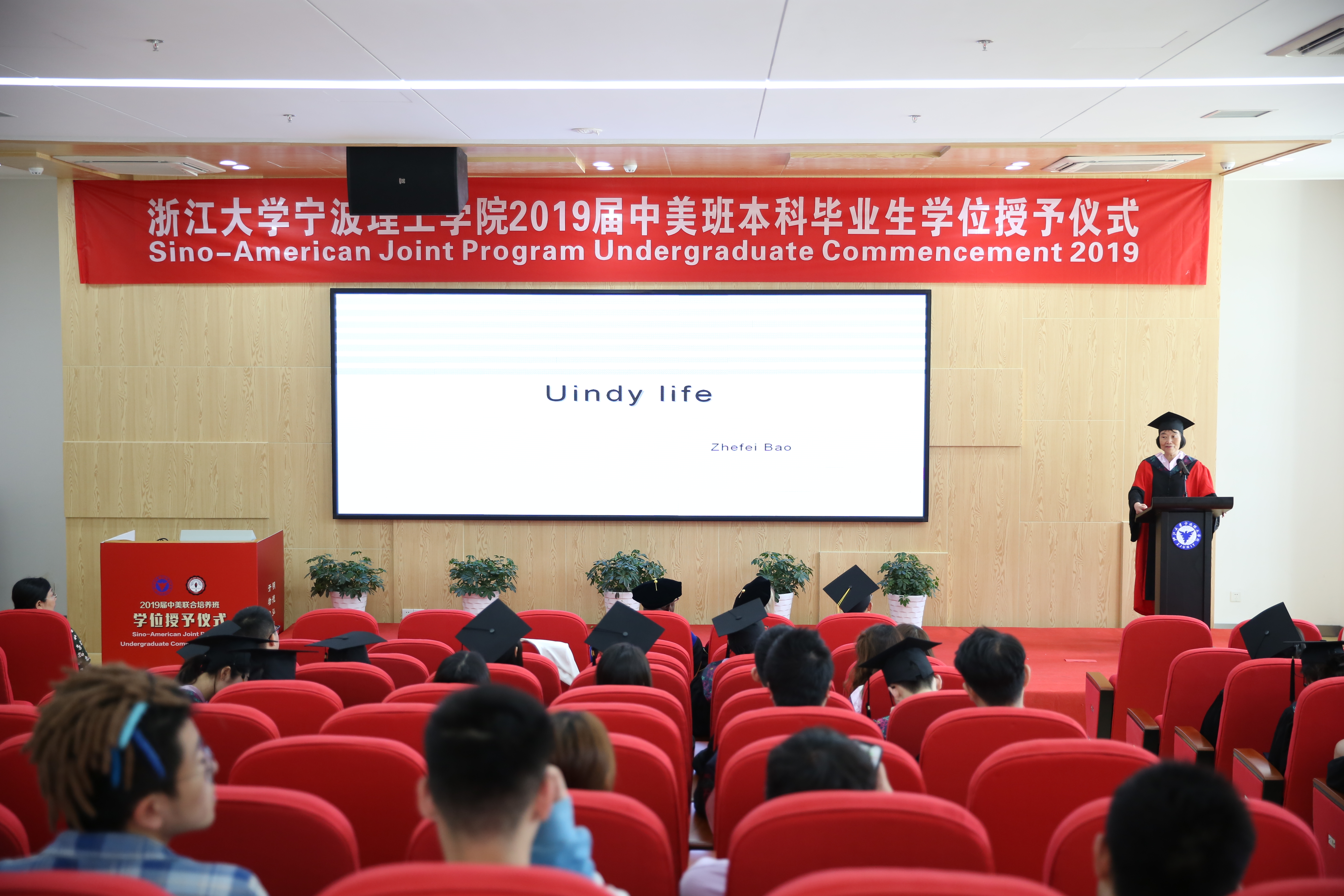 2019年6月5日9点30分,浙江大学宁波理工公司2019届中美班本科毕业生学位授予仪式在公司学术交流中心1号楼举行。浙江大学宁波理工公司经理章献民、副经理梅乐和、美国印第安那波利斯大学教务长Stephen Kolison博士、副教务长Jodie Ferise博士、yl23411永利官网登录经理肖文、党委书记李萍萍、副经理林承亮、鞠芳辉、马翔、党委副书记周丽娟、公司教务处、外事处、学工部等部门领导、中美班教师代表、毕业班班导师、2019届毕业生以及毕业生家长代表、17-18级中美班员工代表参加了此次学位授予仪式。