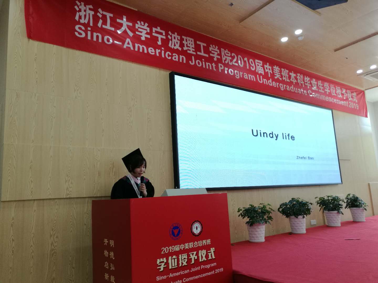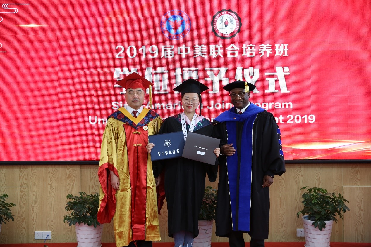 此次学位授予仪式分两个阶段进行。第一阶段由公司副经理梅乐和主持,梅经理介绍了出席仪式的各位领导和嘉宾,并宣布仪式正式开始。首先由梅经理宣读授予屠佳雯等48名员工中方学士学位的决定,再由美国印第安那波利斯大学副教务长Jodie Ferise博士宣读授予屠佳雯等17名赴美完成学业员工美方学士学位的决定。随后2019届中美班毕业生代表高异瓯发言,她对培养她的中美双方老师和母校表示衷心的感谢,并表示自己在今后会更加努力地学习和工作。