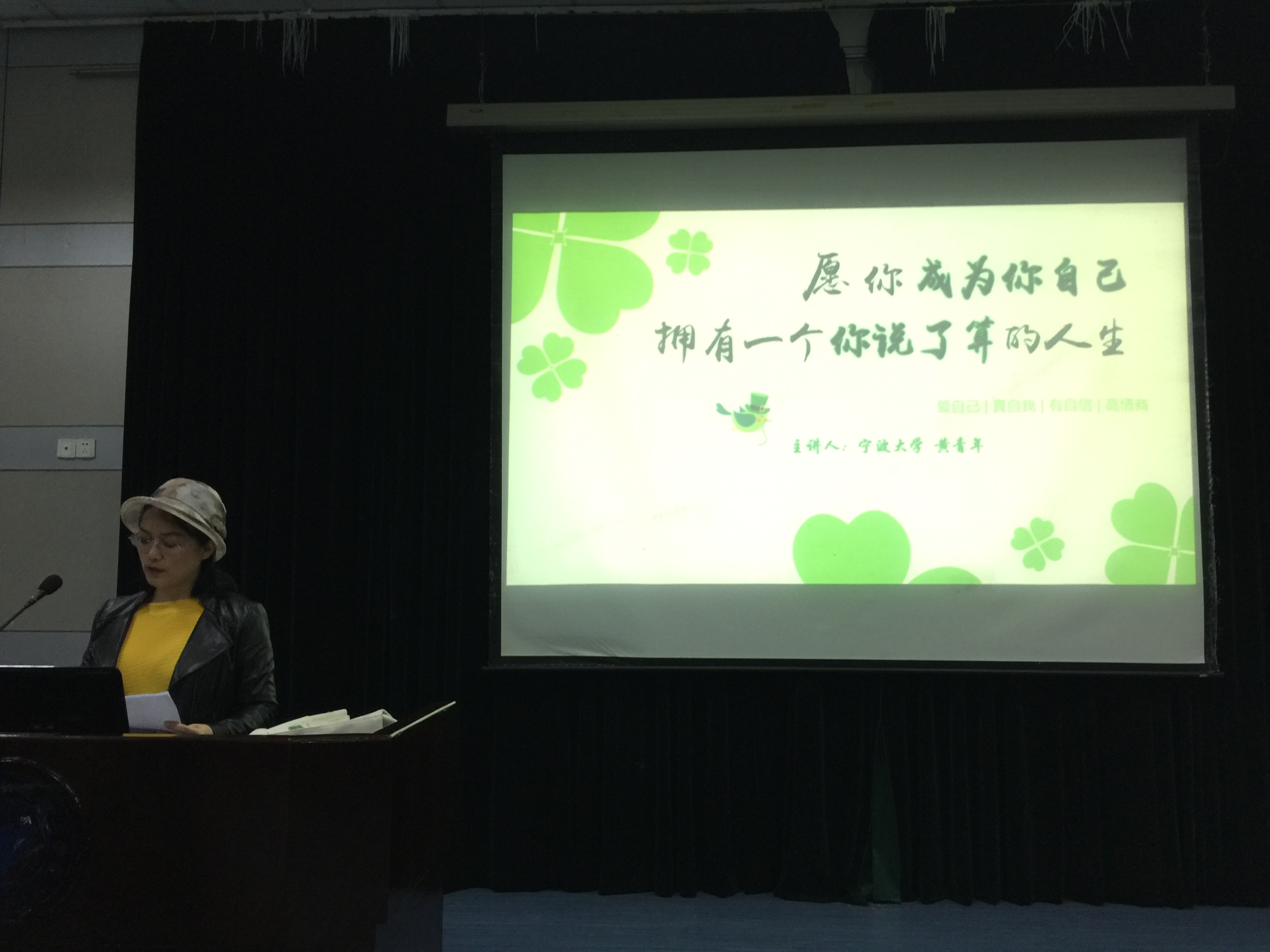 据悉,黄老师对本次活动做了精心准备,专门为老员工心理健康问题做了课件,并提前准备好材料下发,还嘱咐工作人员为同学们播放入场音乐《风中的羽翼》。黄老师是宁波大学“E-青年工作室主任,律师,国家心理咨询师,至今在国内外学术刊物及全国性和国际性学术会议上发表论文10余篇,主持和参与研究市级课题4项,参与出版编著1部。