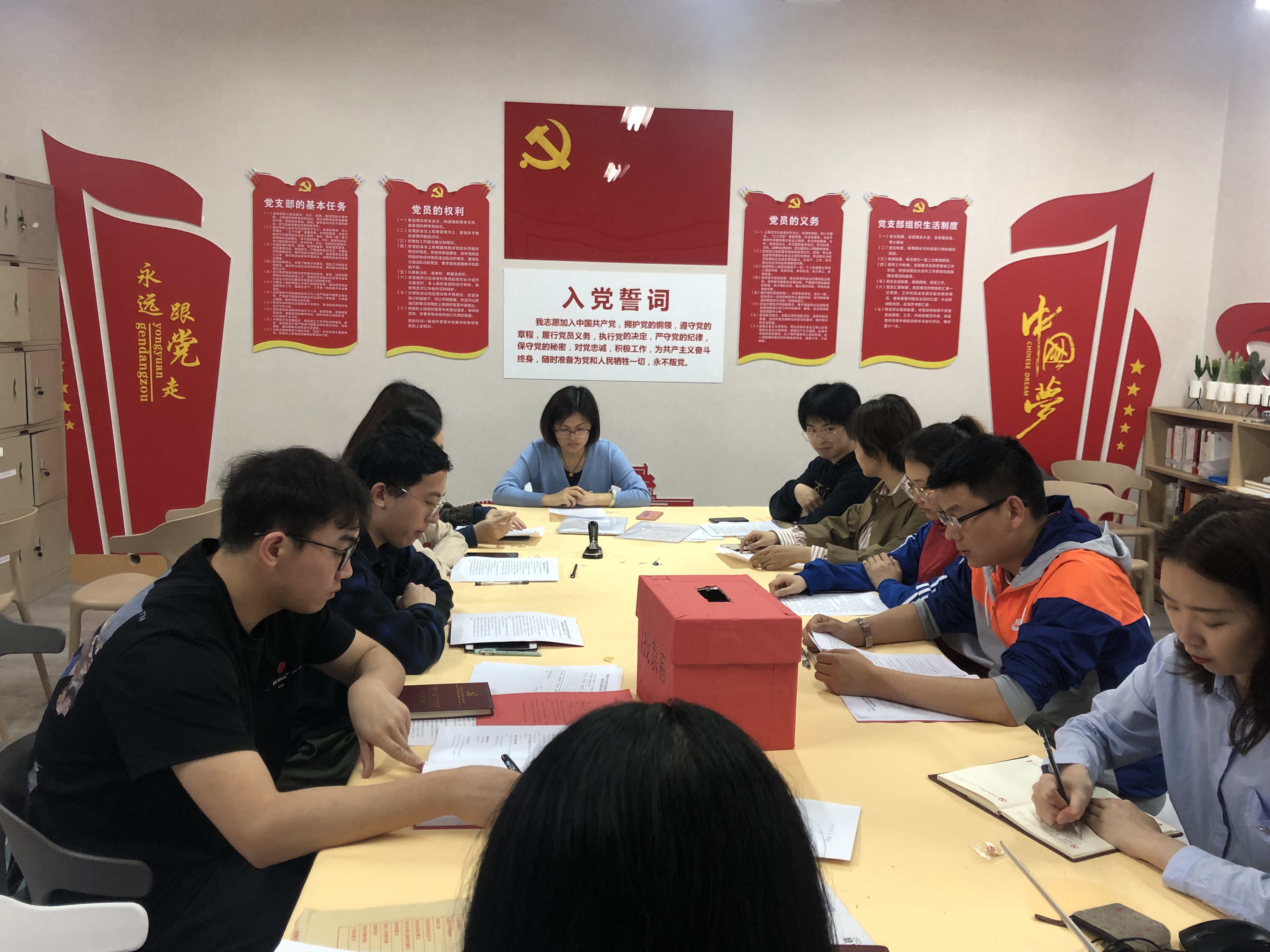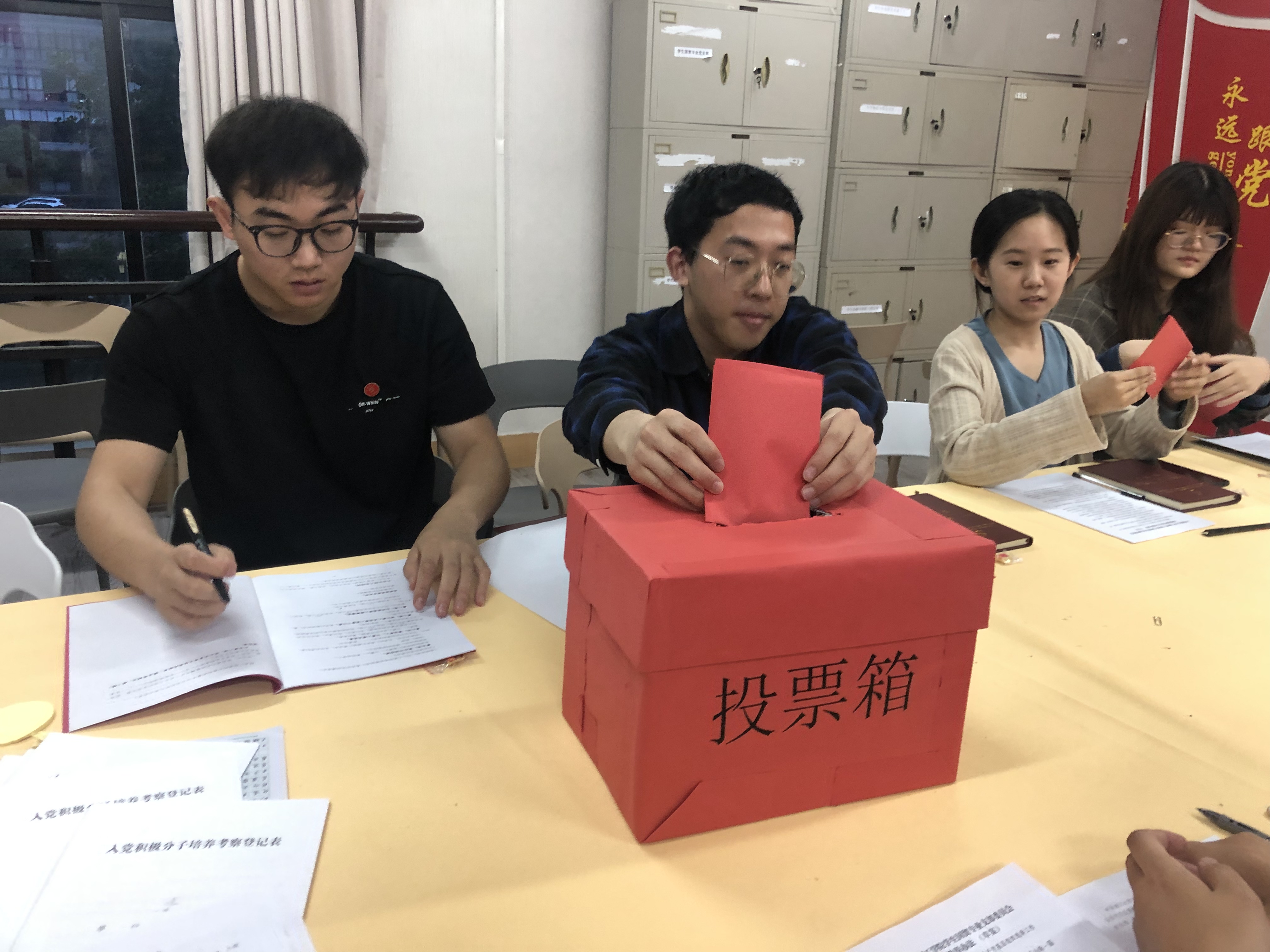 随后,根据会议议程,选举产生新一届支委,陈鑫、陈熠、来佳菲三位同志当选新一届员工国贸专业党支部支委。接着,新支委召开会议,开展支部书记等选举和分工。