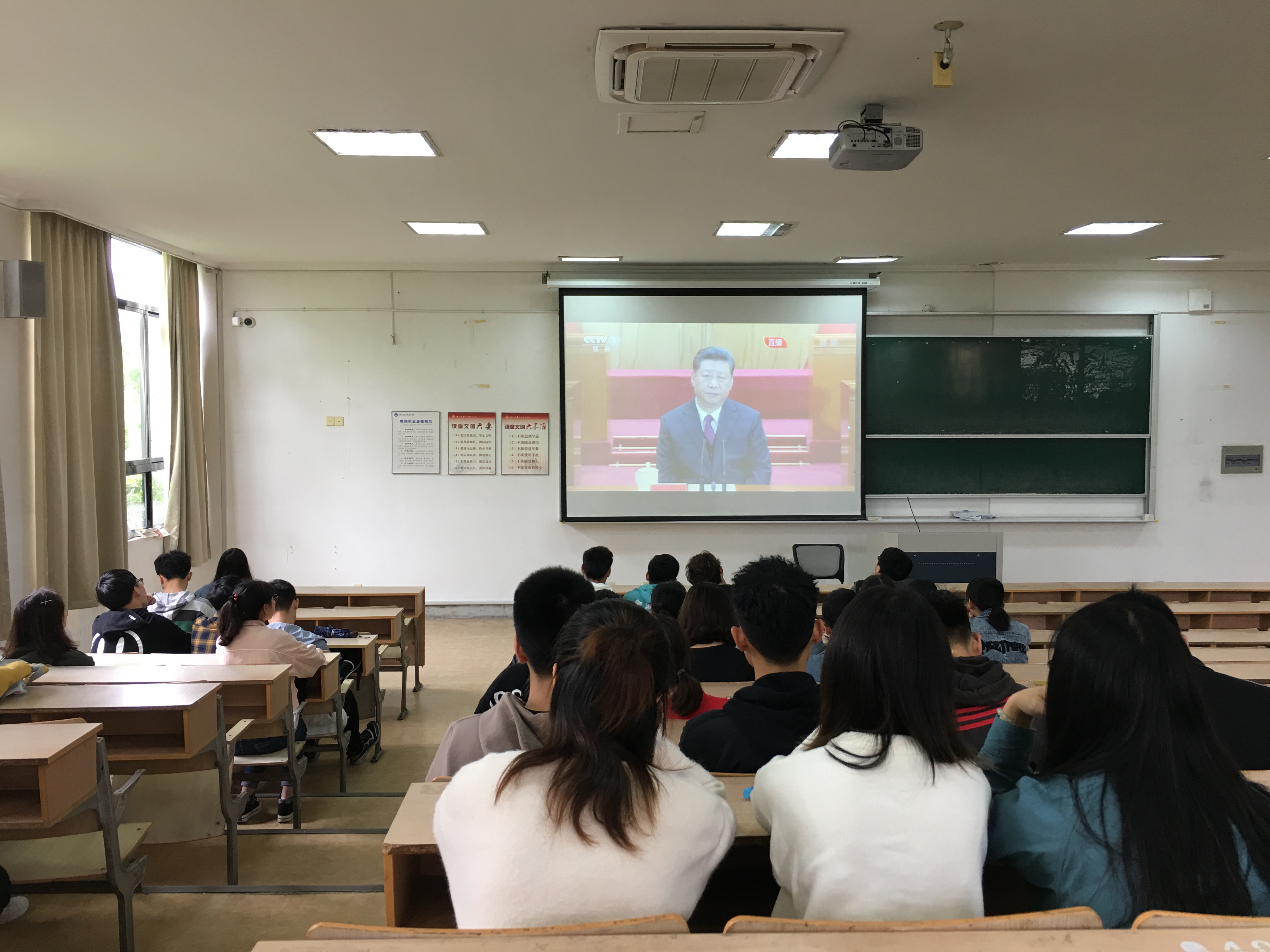 5月4日上午,yl23411永利官网登录团员青年和员工组织负责人在SC117观看习近平总书记在纪念五四运动100周年大会上的重要讲话,讲话引发同学们强烈反响。同学们纷纷表示,新时代要继续发扬五四精神,把自己的小我融入祖国的大我、人民的大我之中,用青春之我创造青春之中国、青春之民族。