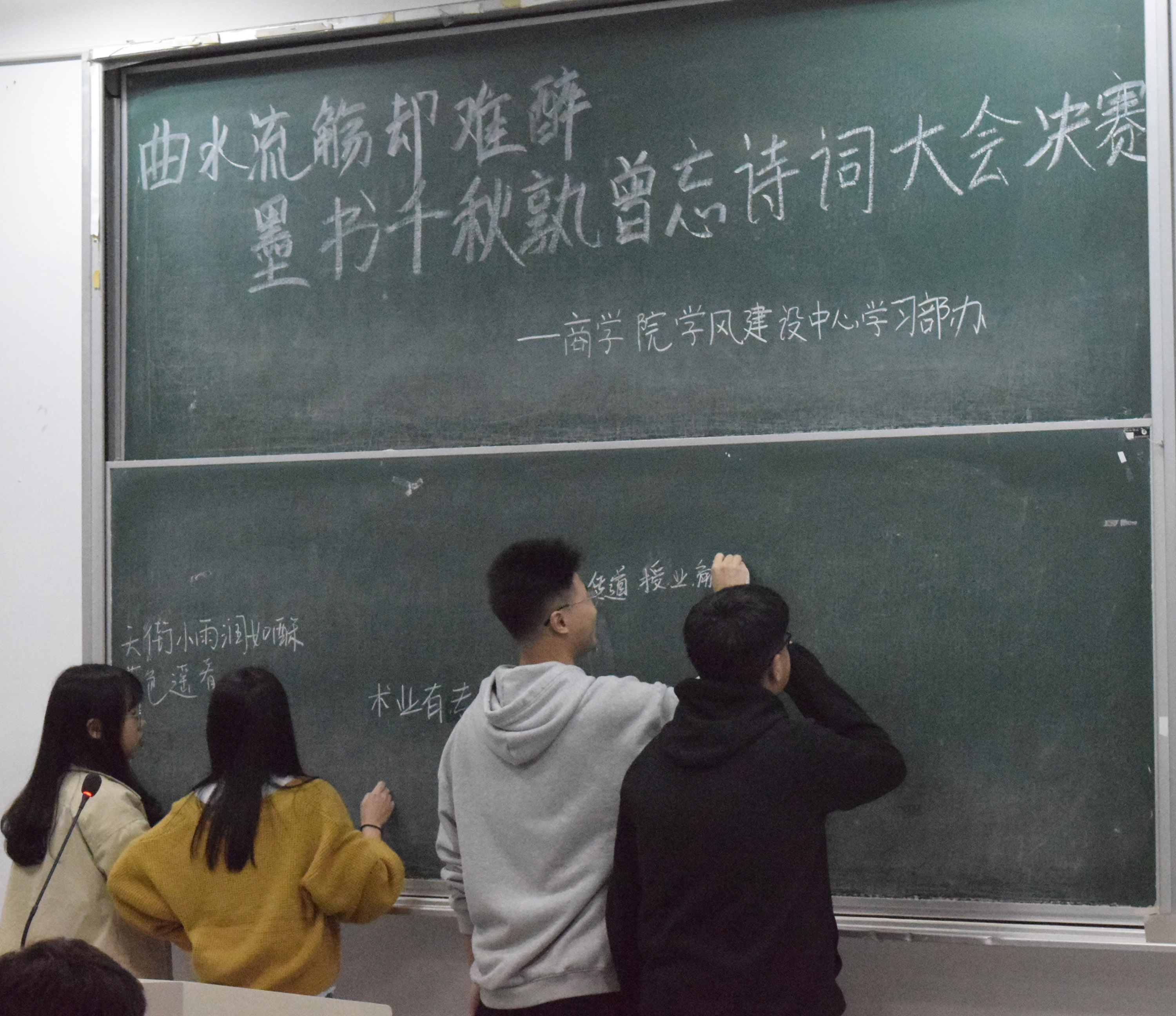 4月28日18:00,yl23411永利官网登录于sc115举办了诗词大会决赛。18级员工参与了此次活动,公司党委副书记周丽娟老师和公司辅导员出席了此次活动,并担任评委。