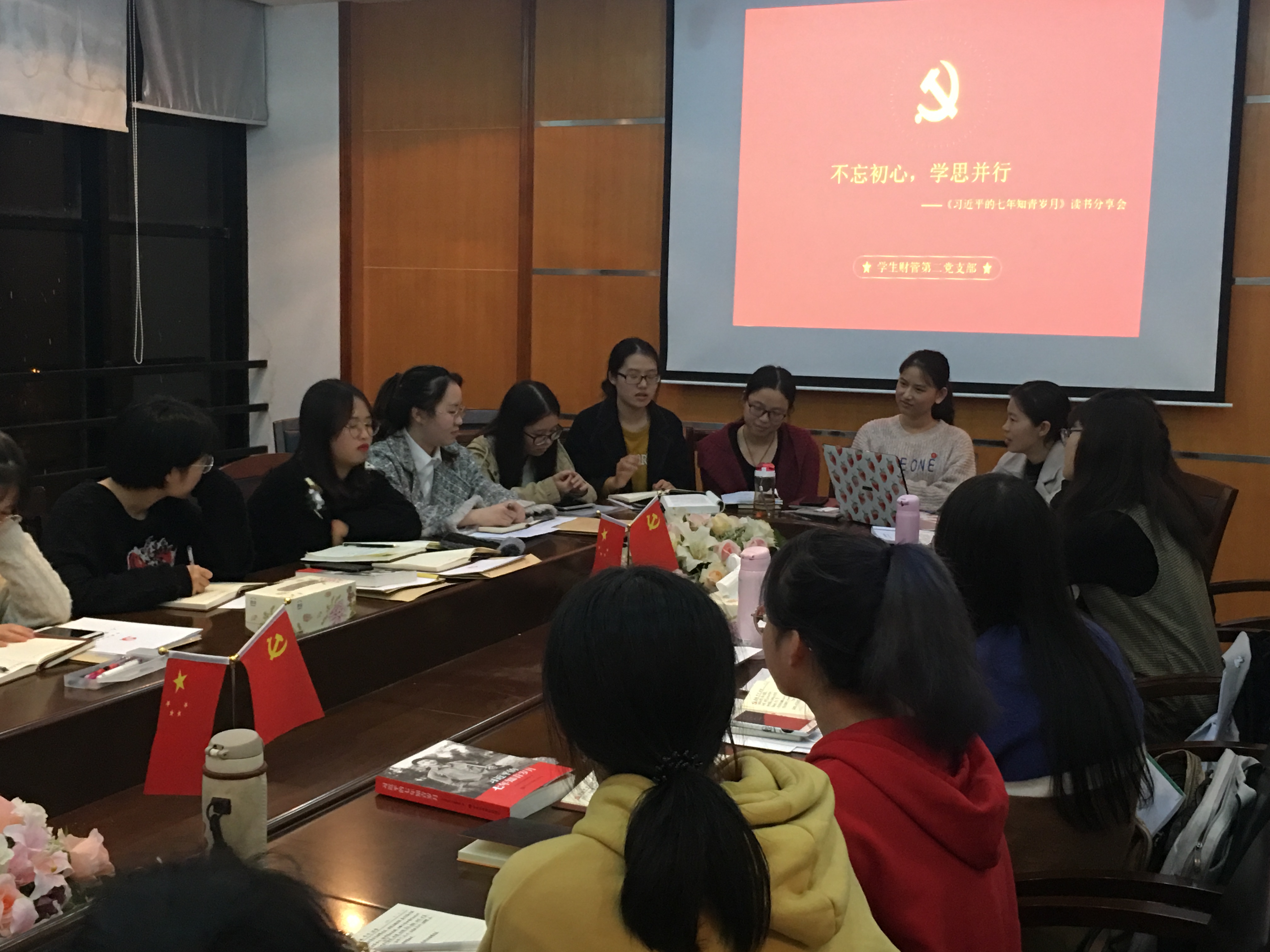 2018年12月3日员工财务管理专业第二党支部在SC415会议室开展以“牢记使命,学思并行”为主题的党日活动。活动分为两个部分,第一部分支部党员、积极分子围绕《习近平的七年知青岁月》进行读书分享,第二部分与会党员、积极分子充分讨论怎样把读书心得融会贯通至专业学习中,并讨论财务管理专业的学习目标和就业方向。在本次活动中,党员、积极分子同志们积极发表自己的看法,推进了党员与积极分子思想修养的提升。
