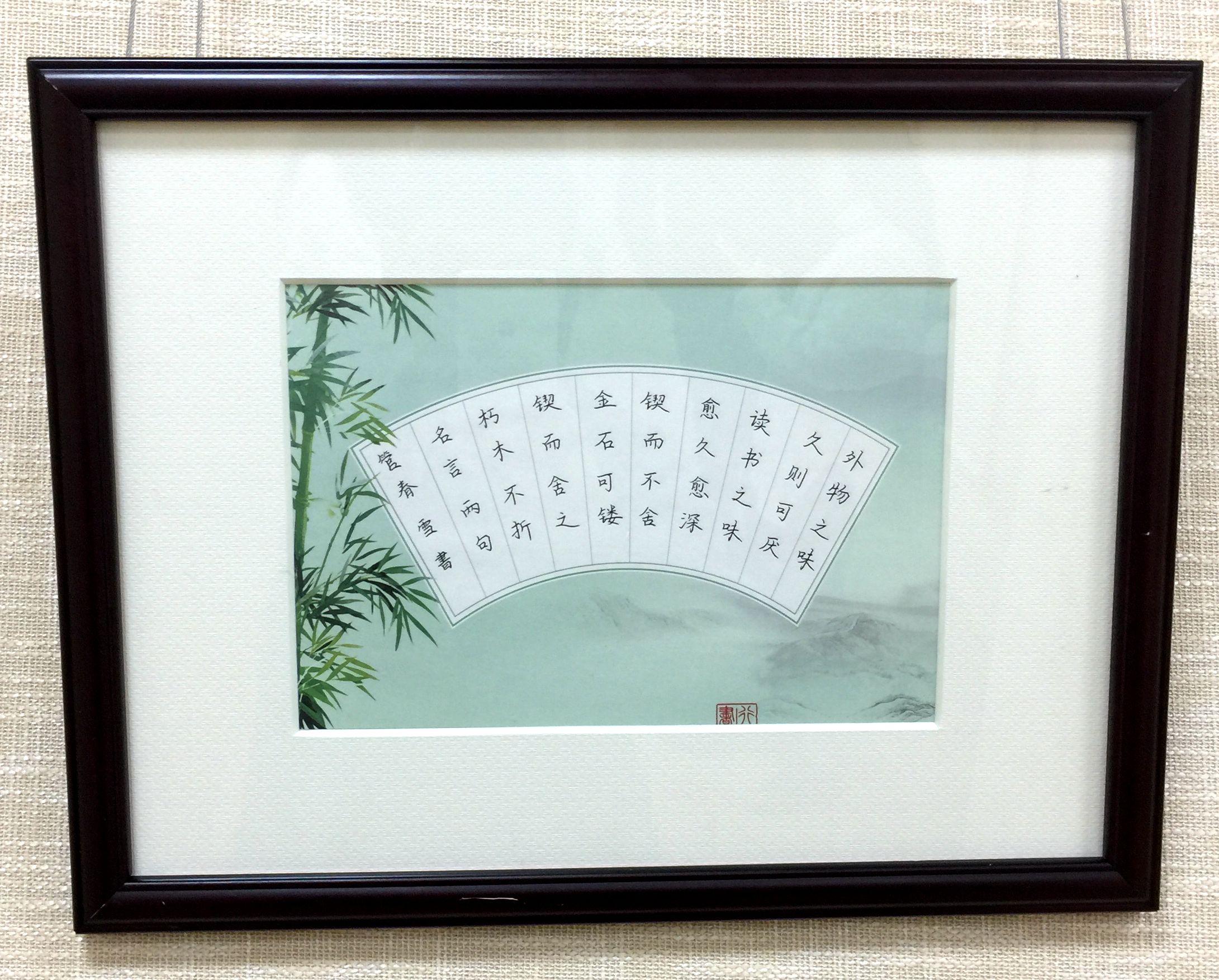 本次展览共收到70幅书画作品,经过评选,50件优秀作品入展。作品有软笔书法、硬笔书法,有国画、瓷画、漆画等,紧扣主题,生动诠释了广大师生对改革开放的热情讴歌,对廉政文化的正确理解,集中展现了校园丰富多彩的精神文化生活和积极向上的精神风貌。