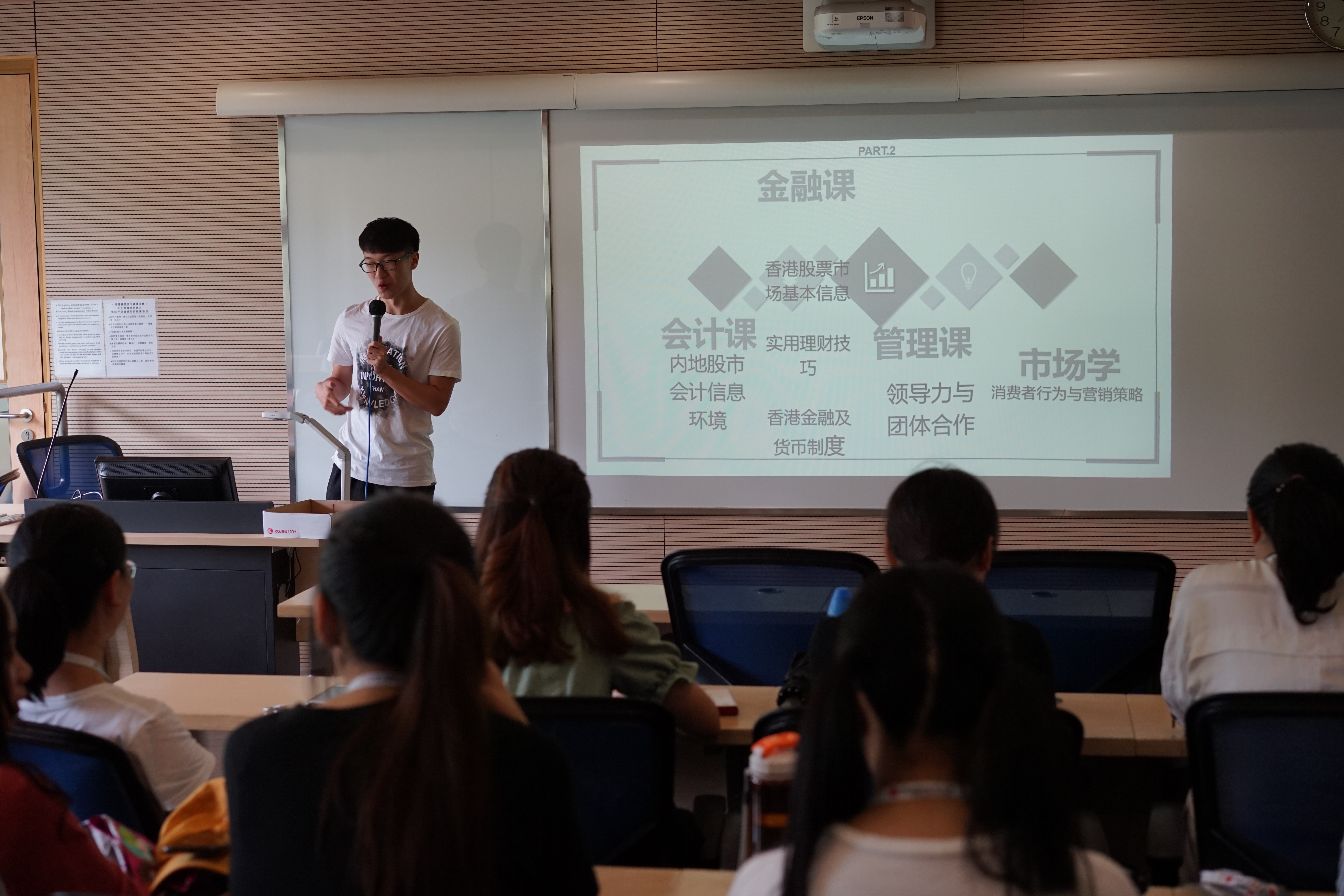 来自16级财务管理专业的王奕人同学作为员工代表进行发言。王奕人同学对本次的课程学习,如内地股市会计信息环境、香港股票市场基本知识、香港金融与货币制度、领导力与团队合作、消费者行为与营销策略等金融管理课程做了学习心得分享,表示本次学习的课程激发了自己的学习兴趣,回去将继续对相关领域进行更深入的学习研究。