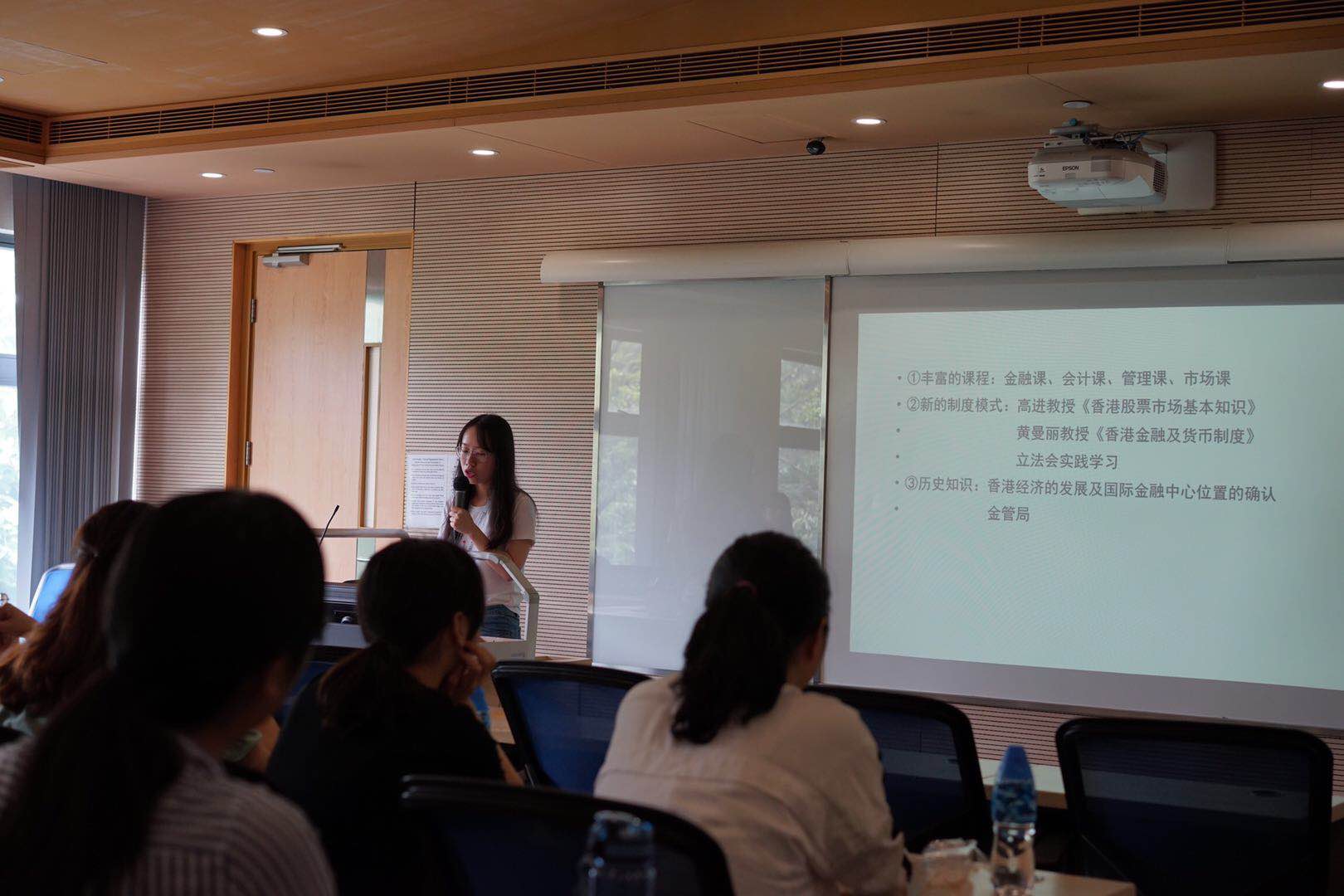 来自17级金融学乐晨宇同学分享了文化研习活动的收获,通过实地调研香港立法会、香港金融管理局、展城馆等具有代表性的研习地,自己对香港的法制、社会管理、金融货币政策、历史沿革等方面都有了更直观的认识,香港的城市印象在脑海里更加生动具体。