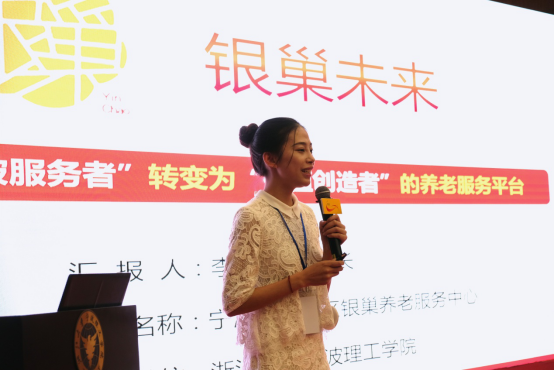 “银巢未来——积极养老一站式服务平台”由余志伟、鞠芳辉、廖海鹏老师指导,李靖慧、王宪等同学历时近三年打造,以把老年人从“被服务者”变成“价值创造者”,实现“老骥伏枥助老有所为,老幼相持促老有所乐”养老新模式为目标,通过搭建一站式服务平台,集合线上线下活动一体,把老年人从传统的接受帮助转换到服务他人,在服务他人的过程中实现自我价值,丰富精神生活,实现积极养老。