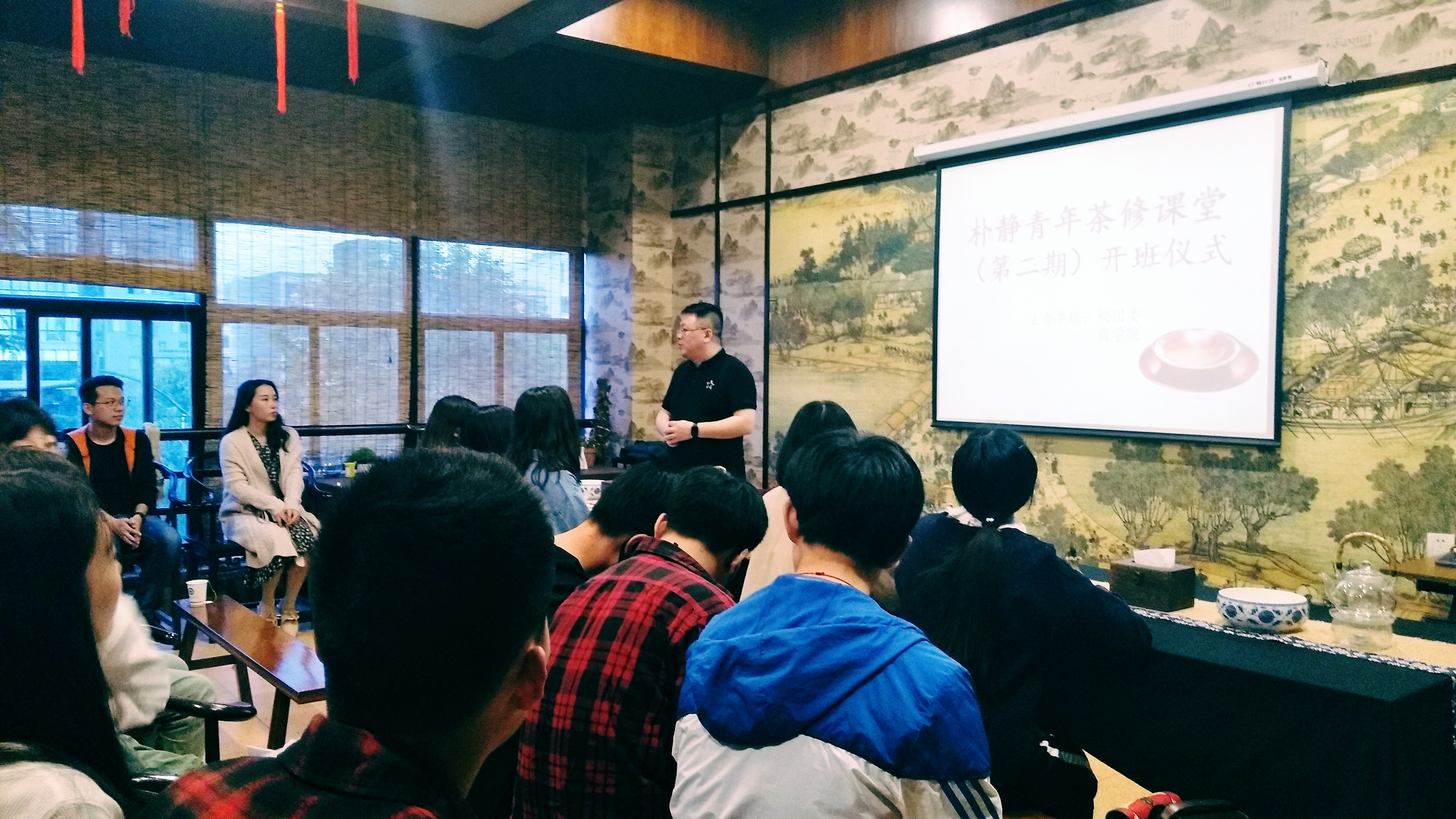 4月10号晚上6点30分,由校团委和yl23411永利官网登录主办的朴静青年茶修课堂(第二期)在大益爱心茶室正式开班。经过报名和面试,来自不同专业25名学员参加了开班仪式。