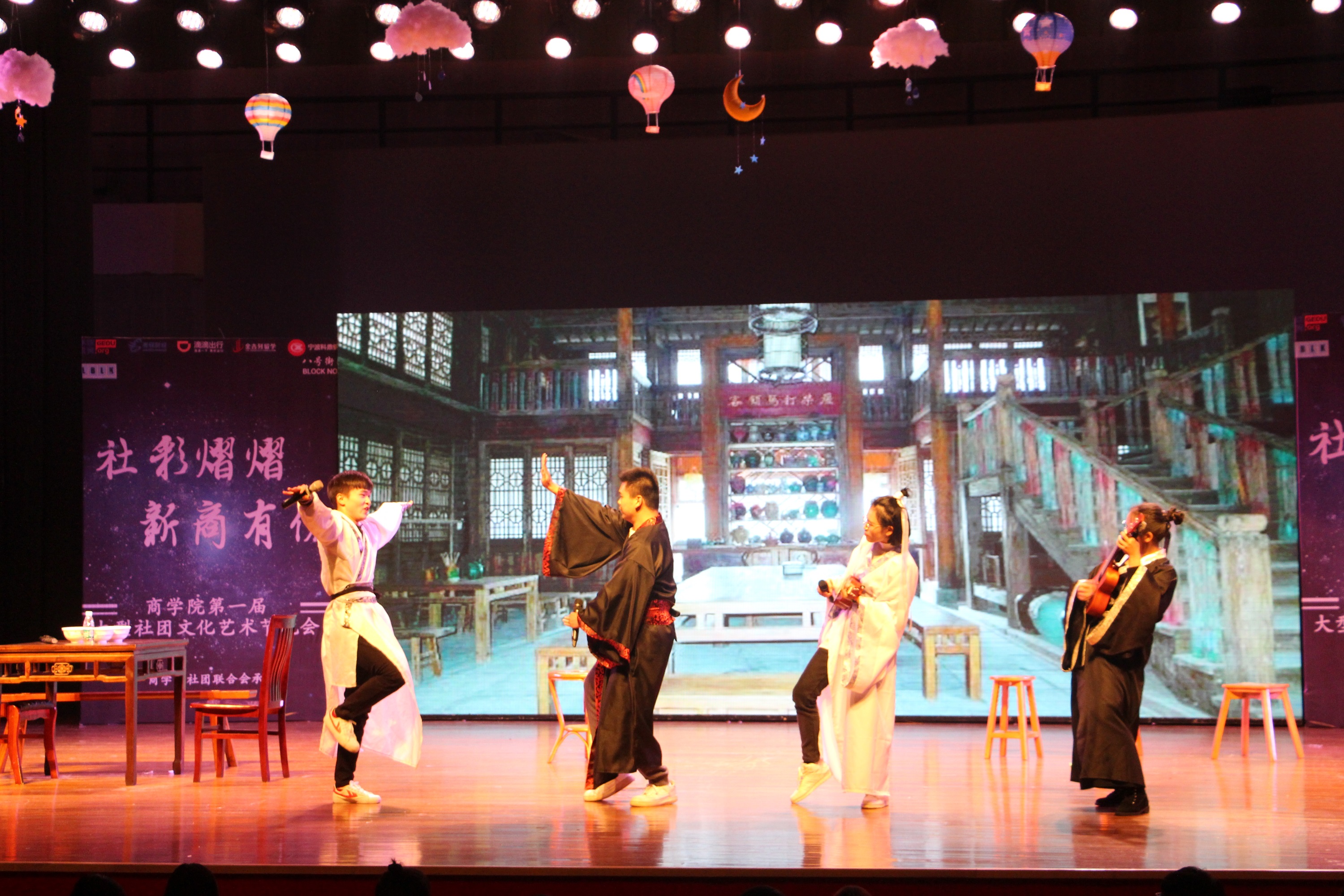 开场前,各大协会通过视频,向在场所有师生表达了美好祝愿,同时希望晚会顺利举行。随后,五个校内社团展示了他们精心准备的参赛节目。yl23411永利官网登录艺术团演艺部8821带来的幽默诙谐小品《刺杀》,电子商务协会代表范政骅演唱的动听歌曲《男孩》,魔术社雷绍琦扣人心弦的读心术魔术,为观众们呈现了一场听觉与视觉盛宴。华夏文化社演唱的《棠梨煎雪》,疯舞堂带来的舞蹈《夜行动物》、《我的新衣》,更是中国传统文化与现代舞蹈的碰撞,点燃了观众们的激情,把现场气氛推向了高潮。