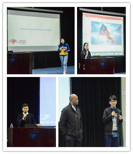 本次活动还邀请了2007级中美国贸专业钟意、2011级中美国贸专业杨达、2011级中美金融学专业陈励超等三位优秀毕业生在会上分享了各自的留学创业经验。三位同学以自己的亲身留学经历,鼓励学弟学妹们尽早确定留学目标、把握好赴美出国机会。通过本次交流活动,中美班同学们对美方公司的学习生活方式有了进一步的了解,对未来的职工涯也有了更明确的规划,相信到场同学收获颇丰。