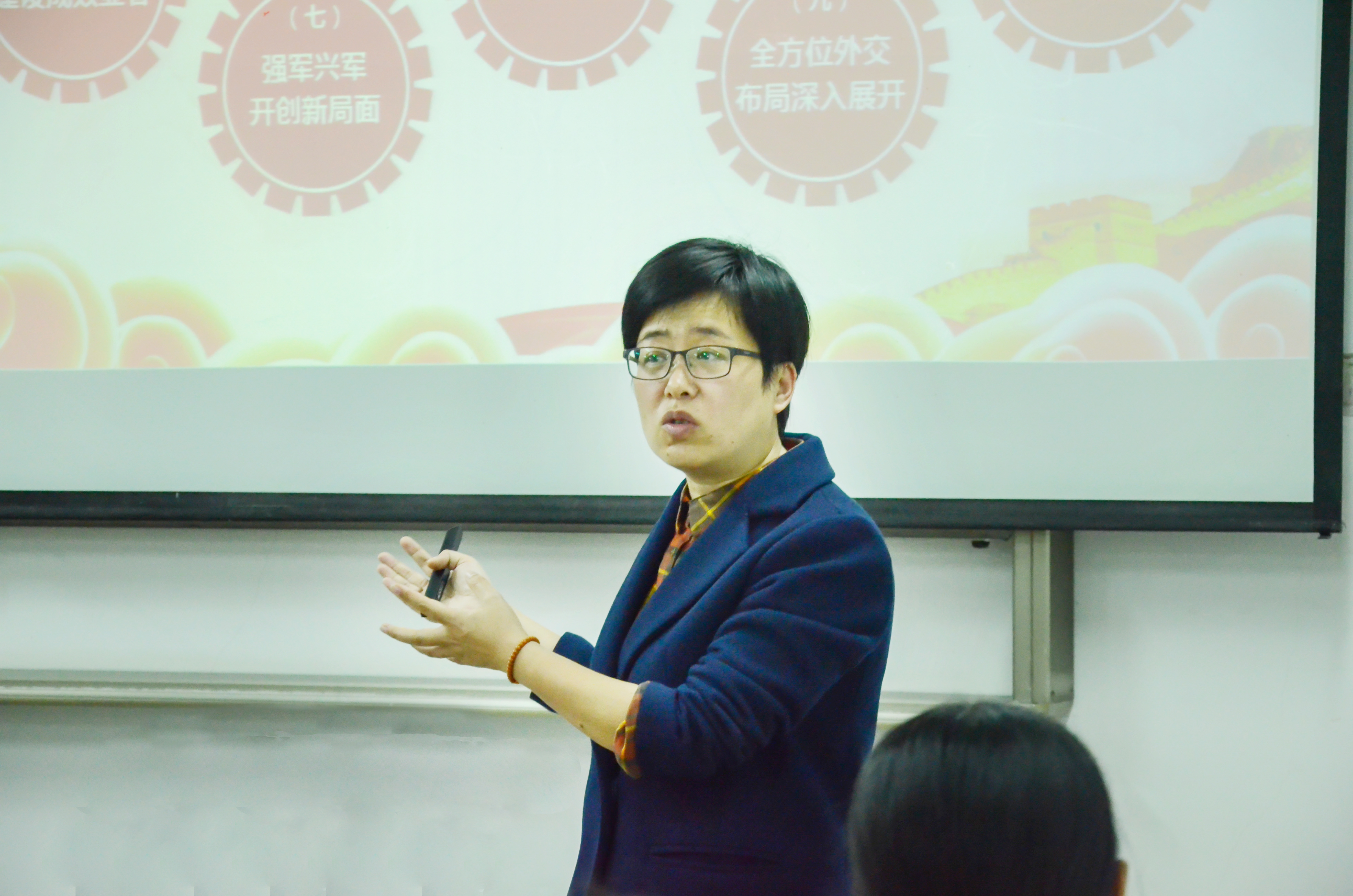 李书记首先解读了党的十九大的历史意义,强调十九大是在全面建成小康社会决胜阶段、中国特色社会主义发展关键时期召开的一次十分重要的大会,要求入党积极分子要时刻关心时政,增强政治参与意识,在学习宣传贯彻十九大精神上发挥模范带头作用。随后,她从十九大的主题“不忘初心,牢记使命,高举中国特色社会主义伟大旗帜”为切入点,带领学员们回顾了十八大以来我国取得的重大成就,极大地增强了学员们的民族自豪感。接着,李书记结合自身经历,用生动活泼的事例,诠释了中国共产党人的初心和新时代党的历史使命、中国特色社会主义新时代的涵义,为学员们深入浅出地解读了习近平新时代中国特色社会主义思想体系和新时代中国特色社会主义发展的战略布局等内容。