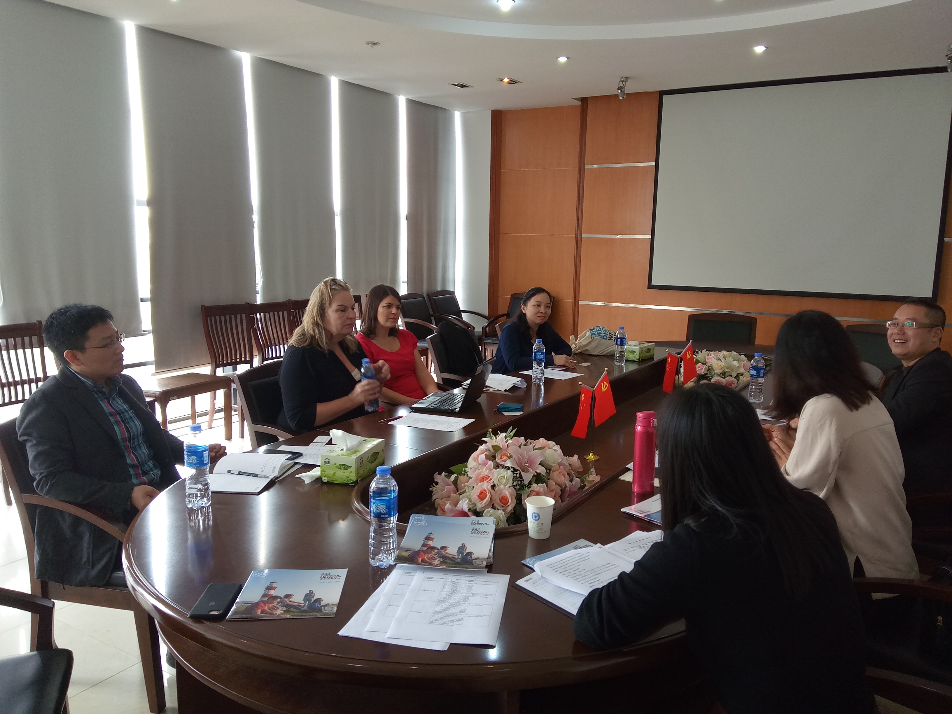 2017年11月13日上午,英国Plymouth University yl23411永利官网登录副经理Alison Ashby 、Plymouth University中国办公室项目联络人彭玉燕等一行三人来公司洽谈国际交流合作项目事宜。公司外事处副处长程萌、yl23411永利官网登录副经理汪浩、外事秘书陈荣等老师出席了本次交流会。与会双方就yl23411永利官网登录员工“3+1” 、“2+2”留学合作项目、暑期短期交流以及教师互访等项目进行深入交流,并就公司员工到普利茅斯大学的相关费用、住宿、学分、外语水平要求等重要问题进行了详细讨论。