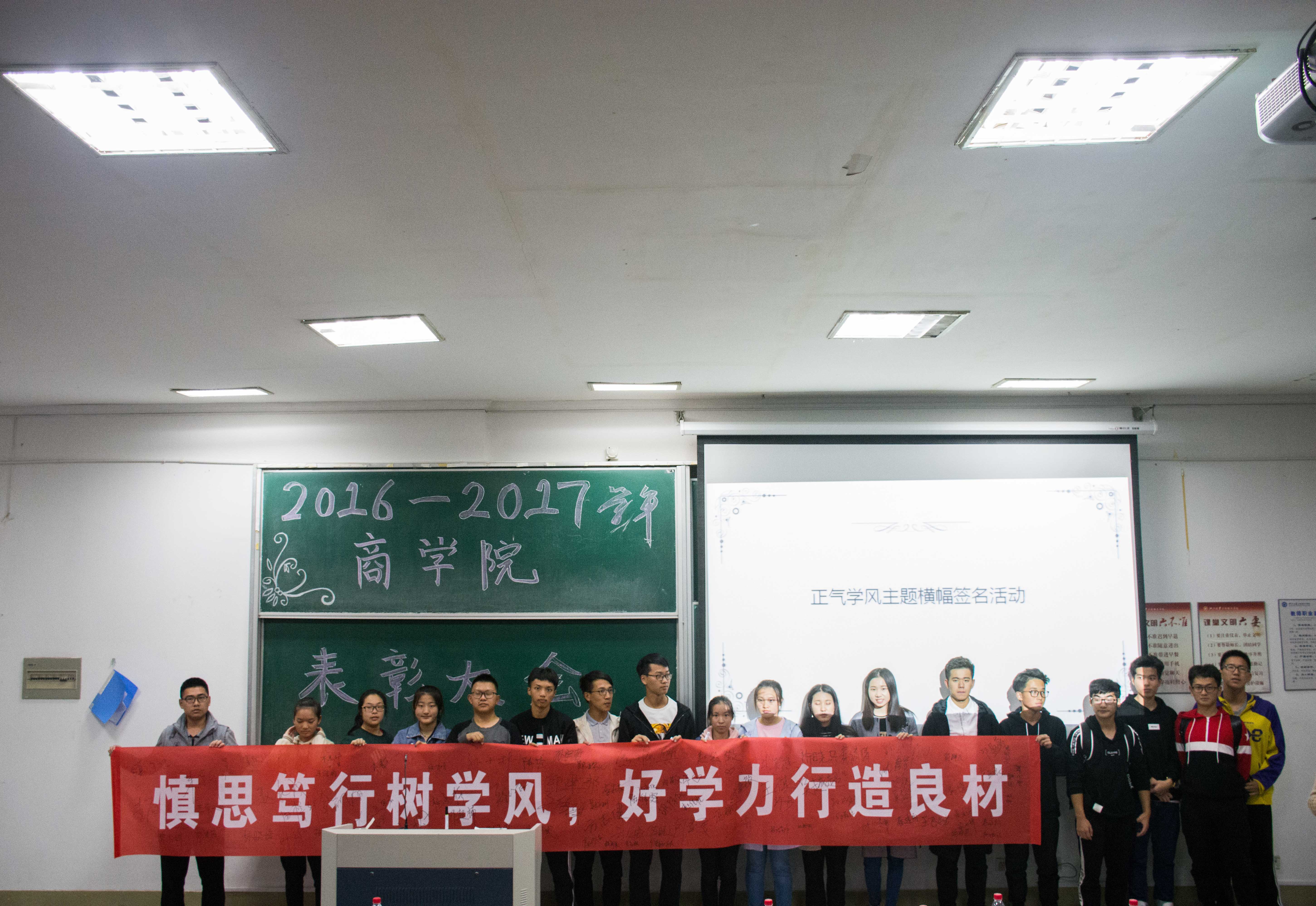 10月31日晚6点30分,由yl23411永利官网登录学风建设中心学习部和学风部承办的2016-2017学年yl23411永利官网登录优良学风表彰大会在SC115举行。yl23411永利官网登录经理助理吴新林老师、辅导员金慧燕老师和包静昇老师出席了此次活动。活动由主持部陈治璋和杨秀秀主持。