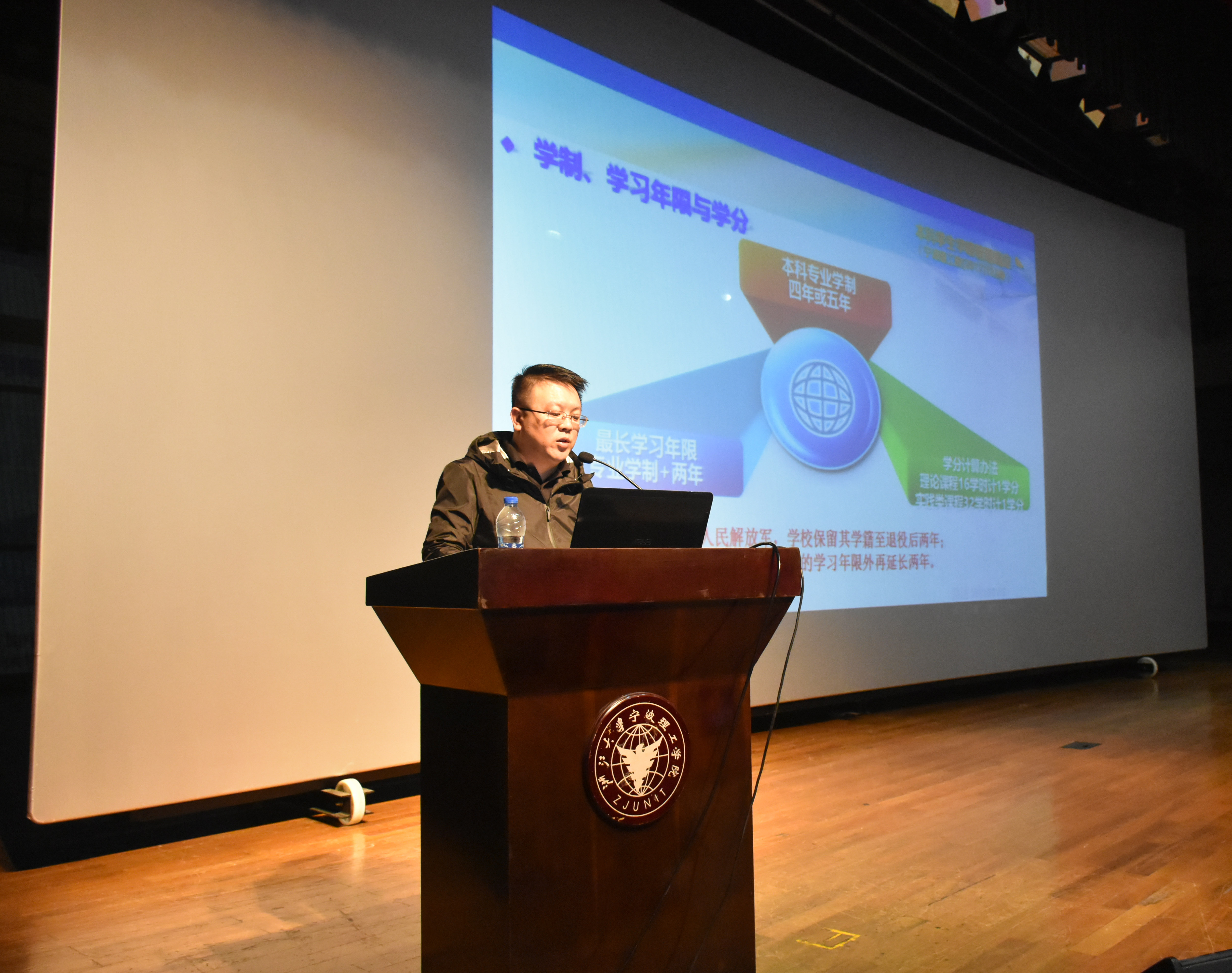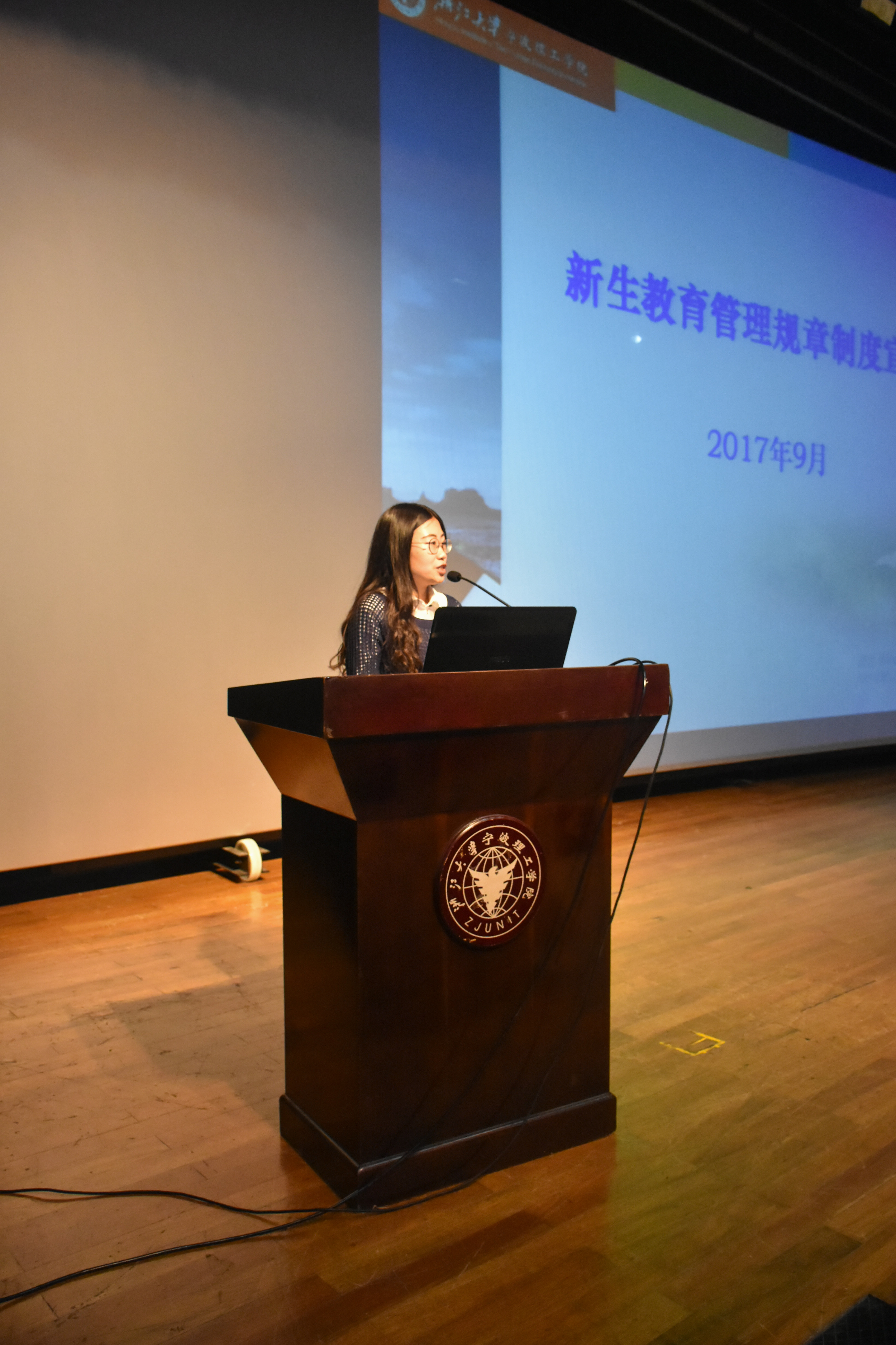 宣讲会上,王一程老师首先给新生们介绍了公司选课制度、学分与绩点、浙大立交桥政策等。他提醒新生每一个学分都是十分重要的,是将来能不能顺利毕业的基础。同时鼓励新生在大学期间不要懈怠,好好学习,积极报考立交桥。金慧燕老师则讲解了员工违纪处分、综合素质测评、评奖评优等相关内容。她表示公司赏罚分明,希望新生遵守规章制度,争优争先。