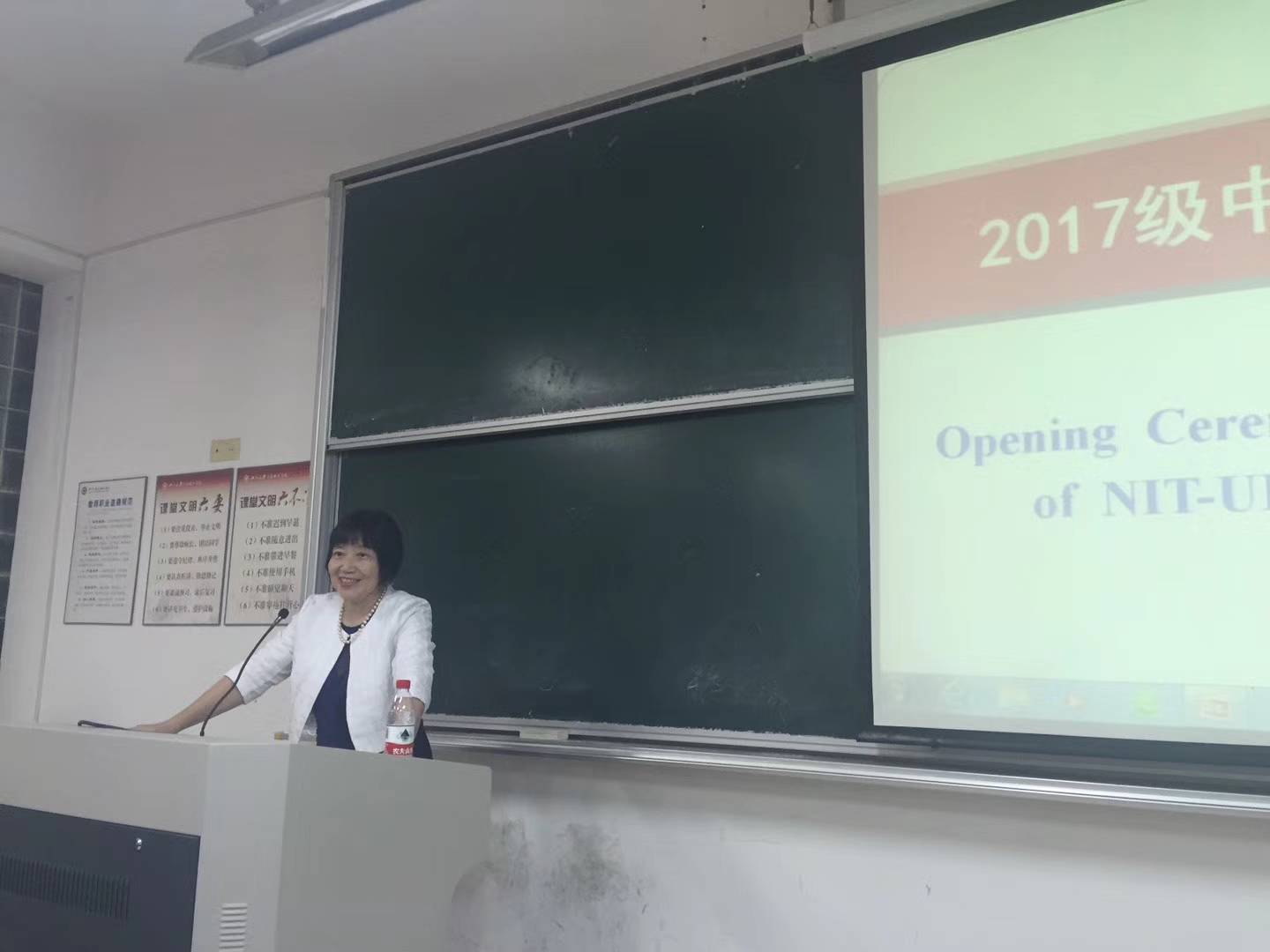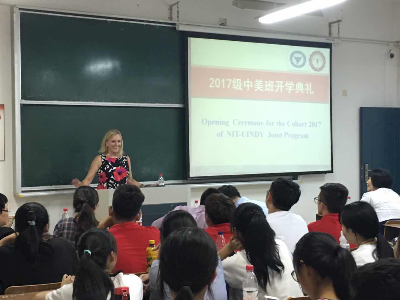 9月26日晚六点半,yl23411永利官网登录2017级级中美班新生开学典礼在SC304教室隆重举行。美国印第安纳波利斯大学执行副董事长蓝采风教授、副教务长Jodie Ferise,集团外事处程萌、yl23411永利官网登录经理肖文、党委书记李萍萍、副经理汪浩、鞠芳辉以及相关老师和2017级中美班全体新生等出席了本次大会。大会由金融学研究所丁宁老师全程英文主持。
