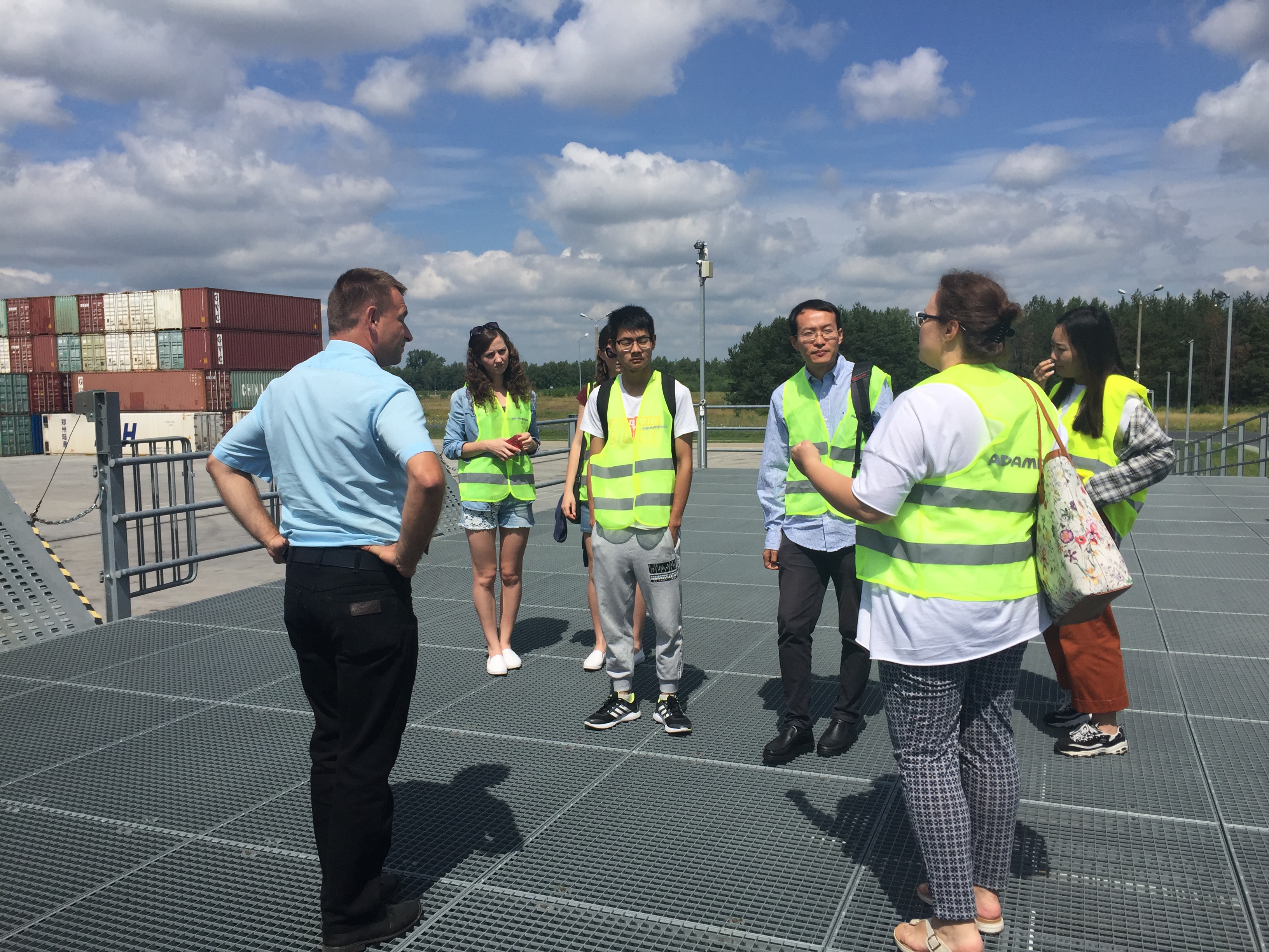波兰当地时间7月12日7时,公司波兰暑期物流公司全体师生在波兰比亚韦斯托克理工大学A.Gudanowska博士与J. Siderska博士的带领下,乘坐大巴,驱车3个小时前往波兰最大的物流中心——Małaszewicze Logistic Centre参观学习。该物流中心是“新丝绸之路经济带”的关键节点和铁路运输枢纽。