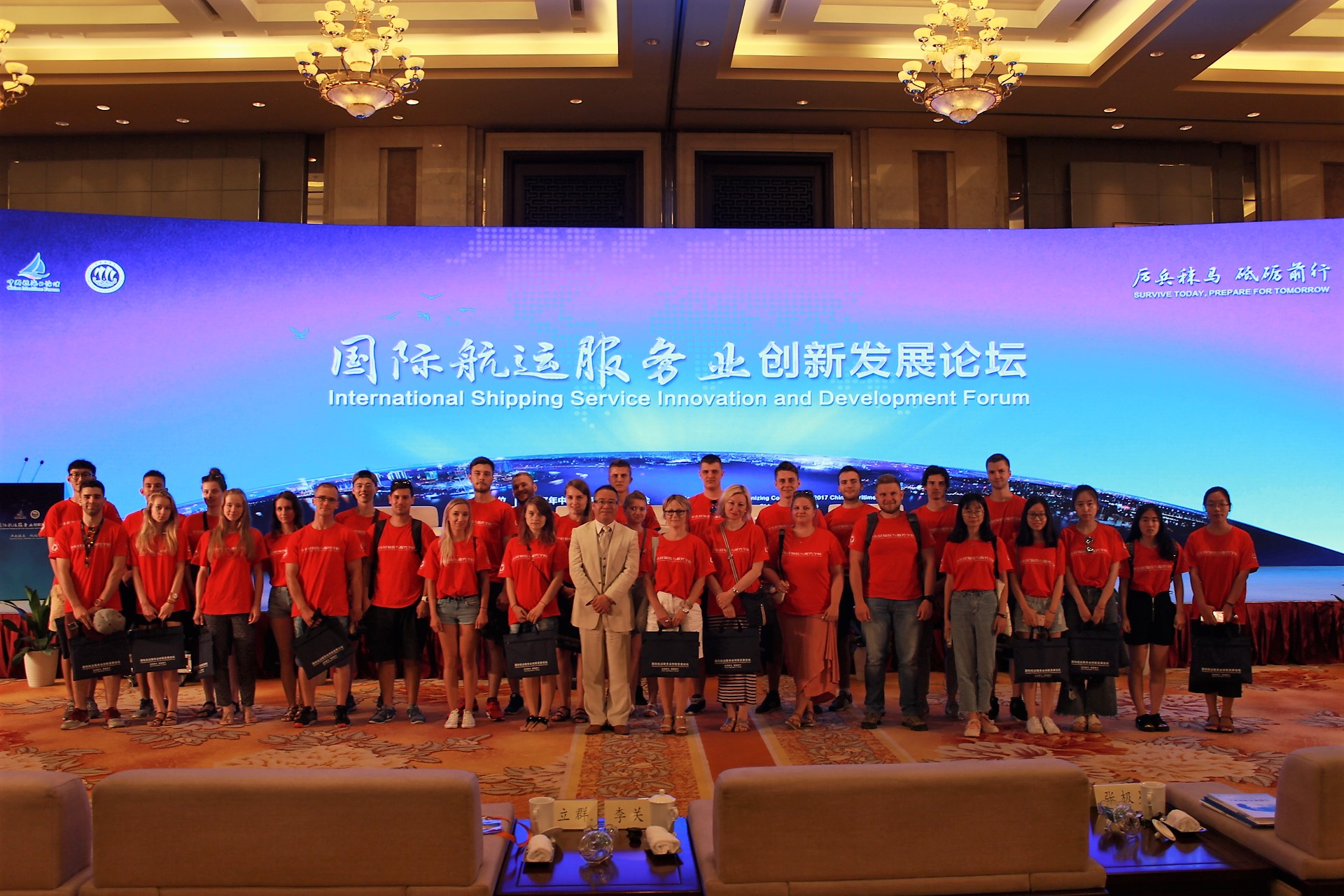 在此之前7月11日,中东欧物流公司的交换生已参加了中国航海日分论坛——国际航运服务业创新发展论坛。在本次论坛上,宁波市人民政府副市长李关定发表了热情洋溢的致辞,国务院发展研究中心研究员张立群对中国2017年宏观经济形势与政策进行了深入解读与预测,浙江大学中国西部发展研究院常务副经理兼“一带一路”倡议研究中心执行主任董学兵对海上丝路贸易指数的解读详细而具有启发,对航运企业创新发展和风险管理两个专题的讨论对话热烈而活泼。中东欧物流公司的交换生们都听得很认真,纷纷表示受益匪浅,不仅深入了解了一带一路对航海服务创新带来的影响,领略了中国港口发展的恢宏历史,而且增加了对一带一路的认识以及对其发展前景的信心。