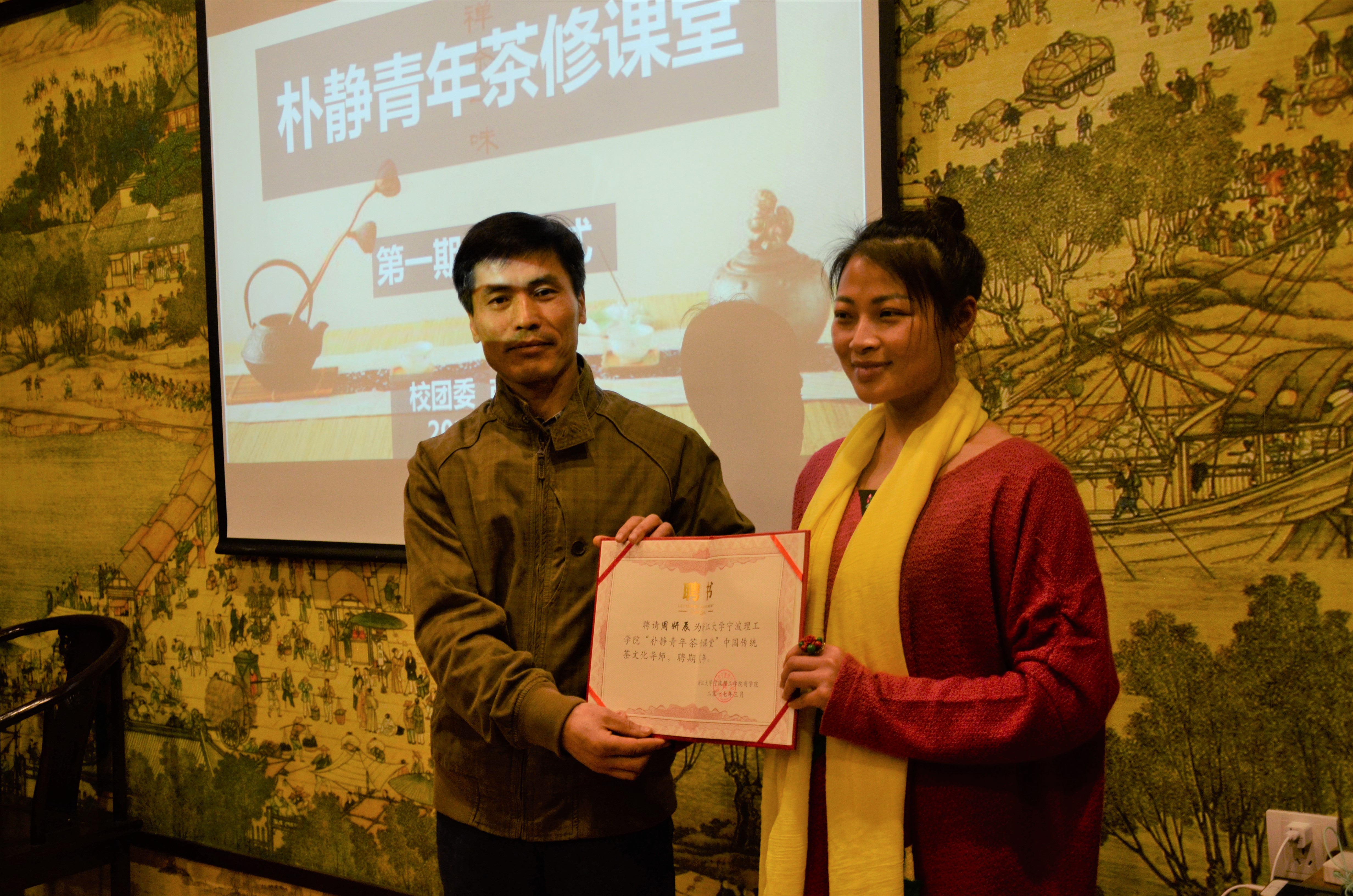 最后,鞠芳辉副经理为朴静青年茶修课堂授课讲师周妍辰老师颁发茶文化导师的聘书。此后,周妍辰老师将同茶修课堂的同学一起分享茶的故事。