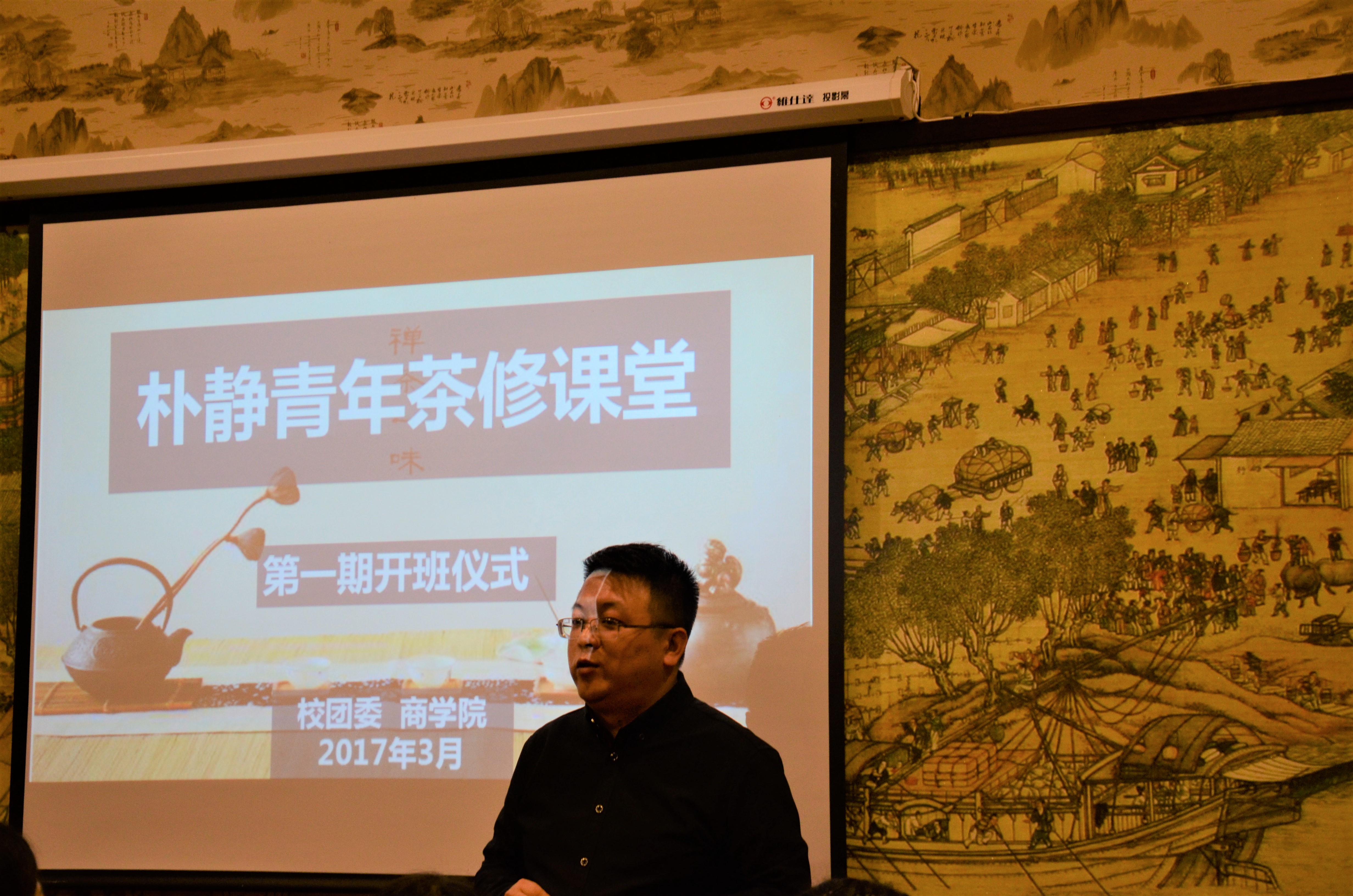 首先,项目发起人王一程老师向学员们介绍了朴静青年茶修课堂。本项目课程以弘杨中国传统茶文化为办学理念,主张“惜茶爱人”,把传统文化和素质教育有机而和谐地结合在一起,通过有形和无形的潜移默化的熏陶,使学员们内外兼修,让茶修,茶会成为一种生活时尚party,以回归简朴的自然状态融入身边的生活中,通过静坐内观,闻香生悦,敬茶爱友,学会珍惜当下,从而觉察内心的宁静规整,和谐圆融。通过系统的课程学习,锻炼学员的组织能力、社交能力和口才,培养员工热爱和传承民族文化的情怀。在茶修课堂,可以吃茶、学茶艺,体验不一样的茶味人生。