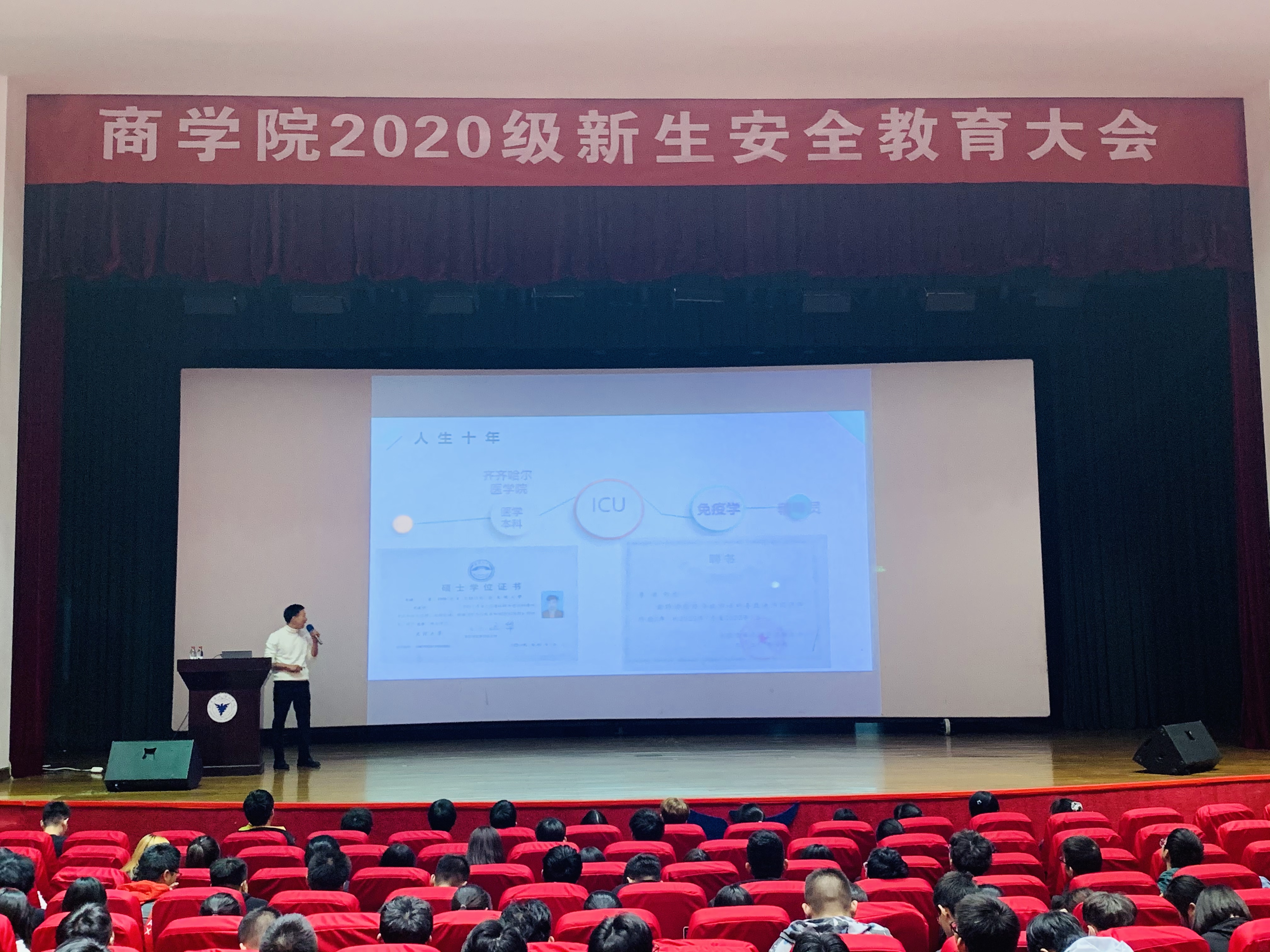 11月10日晚,yl23411永利官网登录在可珍讲堂举办新生始业教育第三讲暨安全教育大会。公司保卫处副处长叶卫树老师受邀讲座,公司辅导员和2020级全体新生现场学习,大会由学工办马双龙老师主持。