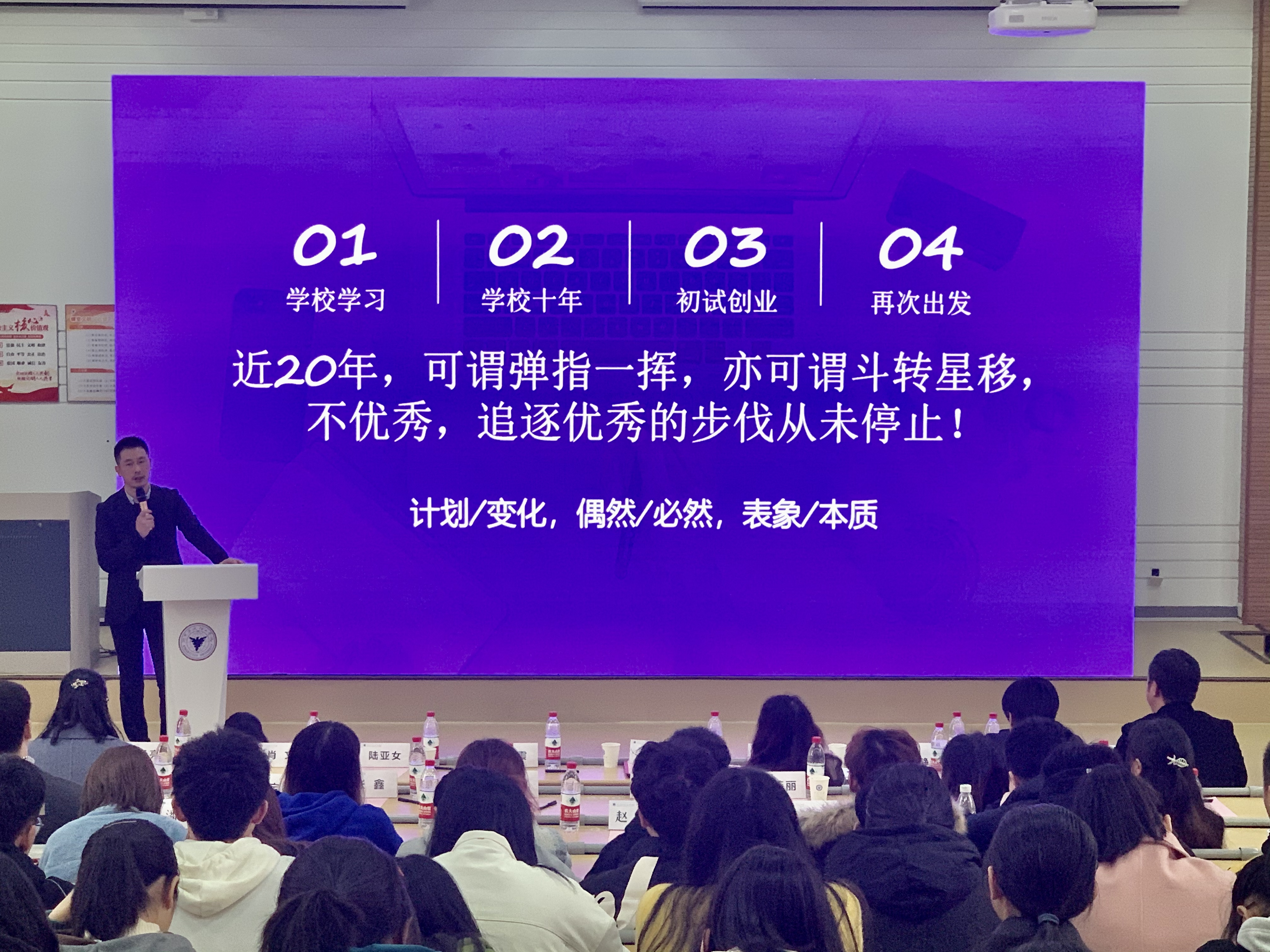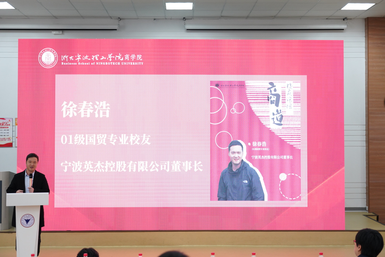 yl23411永利官网登录员工分会副会长、01级国贸专业员工徐春浩,现为宁波英杰控股公司董事长。他从浙大老董事长竺可桢的话引出了对在校老员工的建议,包括“三分做事,七分做人”的准则、塑造明确的个人风格与作风、凝练心境锻炼胸怀和勇于实践等。最后他希望学弟学妹们能“立长志”,而不是“常立志”,希望同学们把握在校学习的机会,立下坚定的志向并为之奋斗。