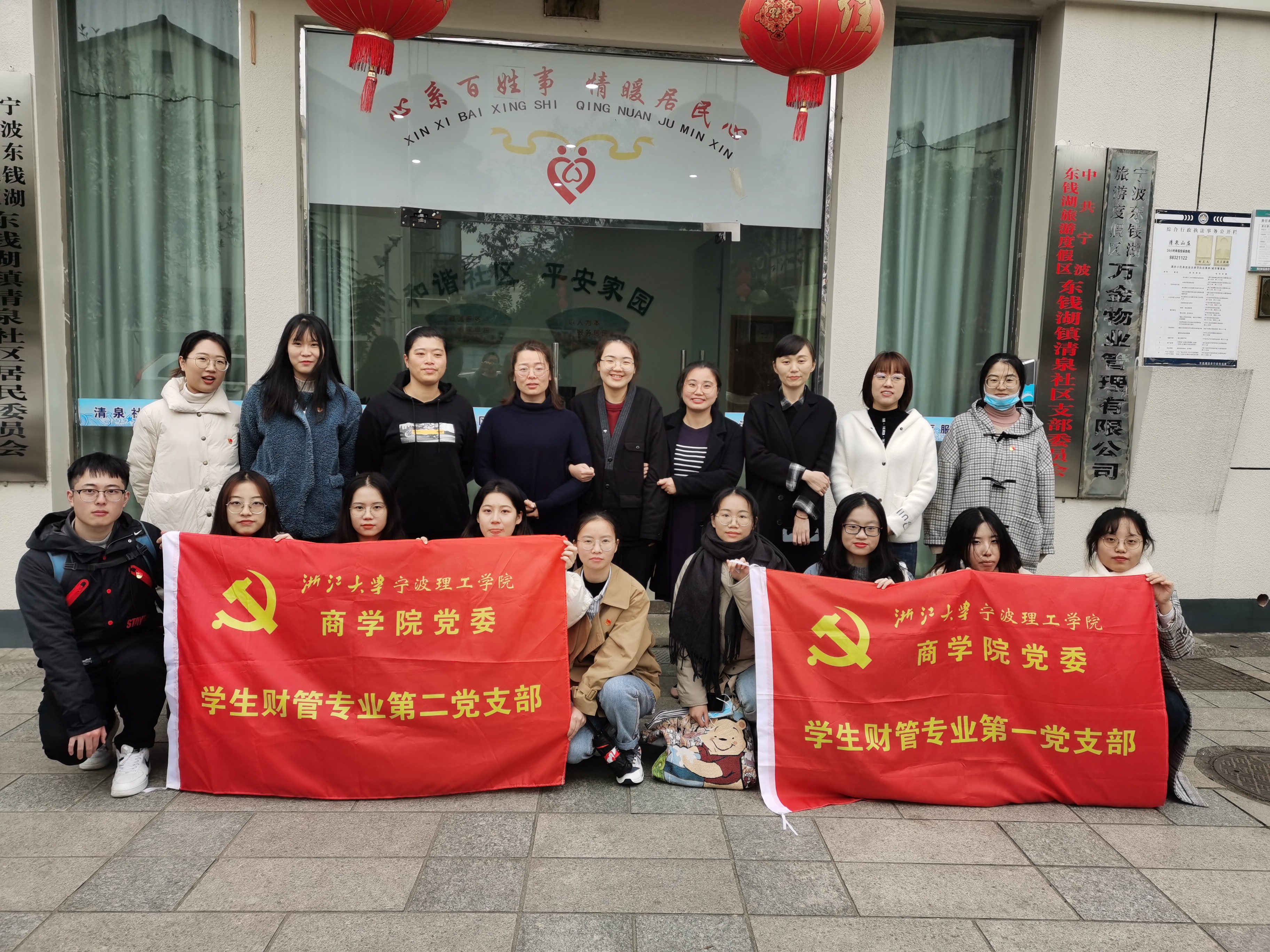 12月3日,员工财管专业第一党支部、员工财管专业第二党支部开展主题党日活动,一同走进东钱湖清泉社区,学习十九届五中全会精神,学习抗疫精神。