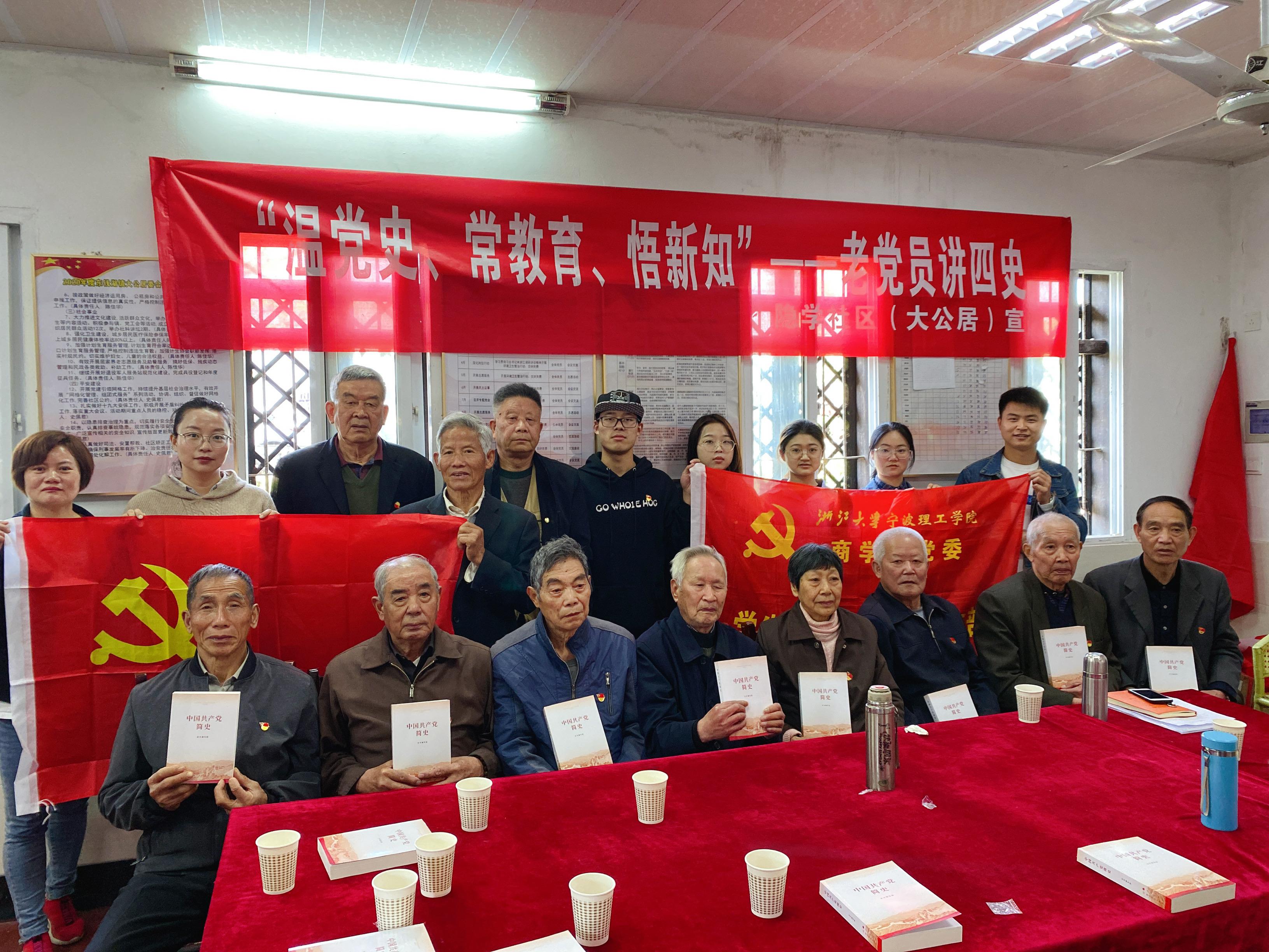 为迎接建党100周年,强化党员学党史、强信念、跟党走意识,4月20日,员工金融专业第一党支部前往东钱湖隐学社区大公居委会开展主题党日活动。东钱湖镇隐学社区党支部书记谢村燕、隐学社区大公居委会党支部老党员及员工金融专业第一党支部部分党员参加活动。主题党日活动由谢春燕主持。