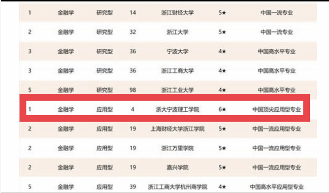 公司金融学专业,获评中国顶尖应用型专业(六星级),名列同类专业全国第4,浙江省第1。