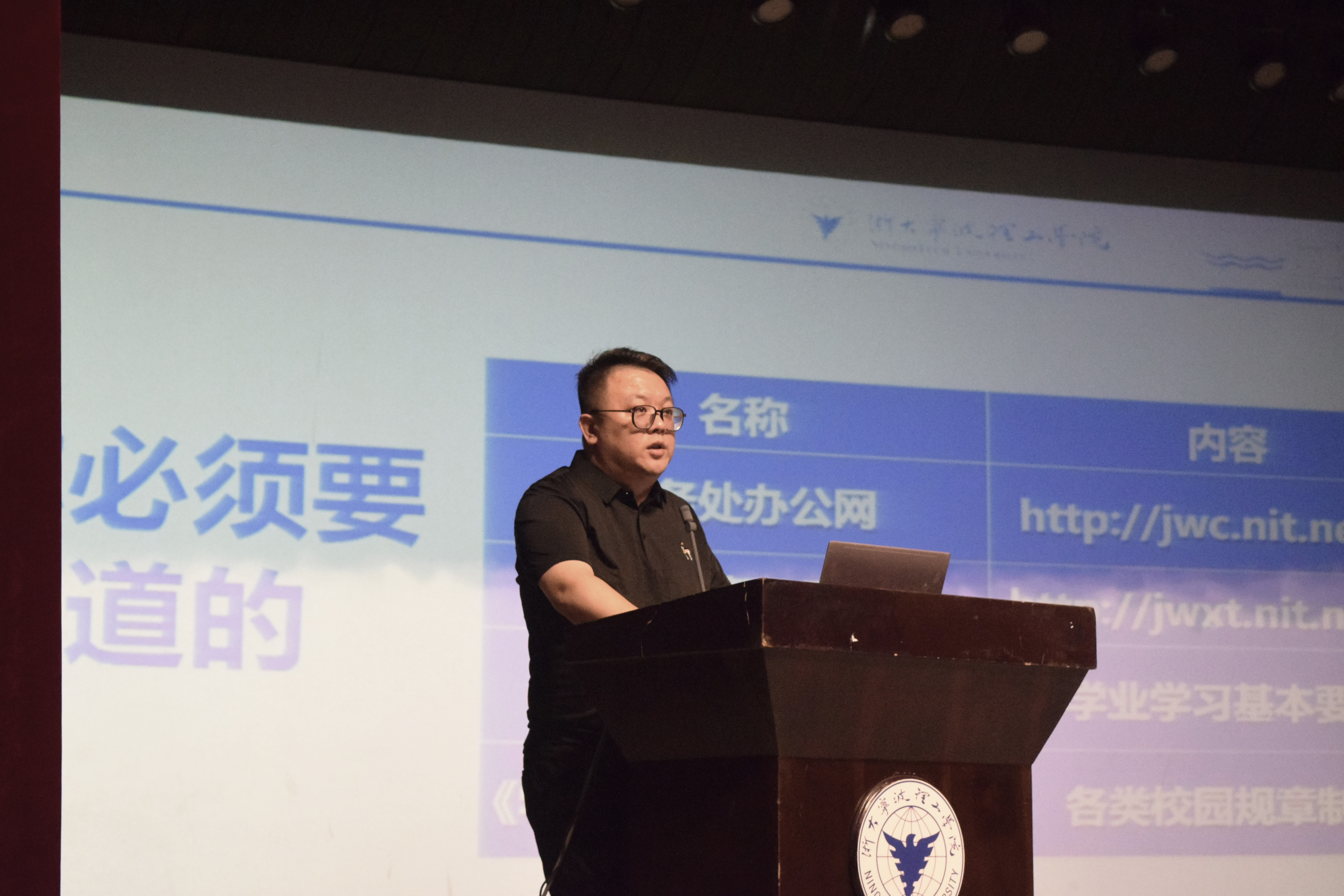 首先由教务办王一程老师进行教学管理规定教育。王一程老师向同学们介绍教务处办公网、教务管理系统两大官方网站;根据《专业培养方案》明确学业学习基本要求;逐条讲解《员工手册(2021级)》课程考核、学籍异动等条例 ,加深同学们对各类校园规章制度的理解。同时寄语同学们不负青春,不负韶华,不负时代,珍惜学习时光,走好人生道路,为中华民族伟大复兴贡献聪明才智。