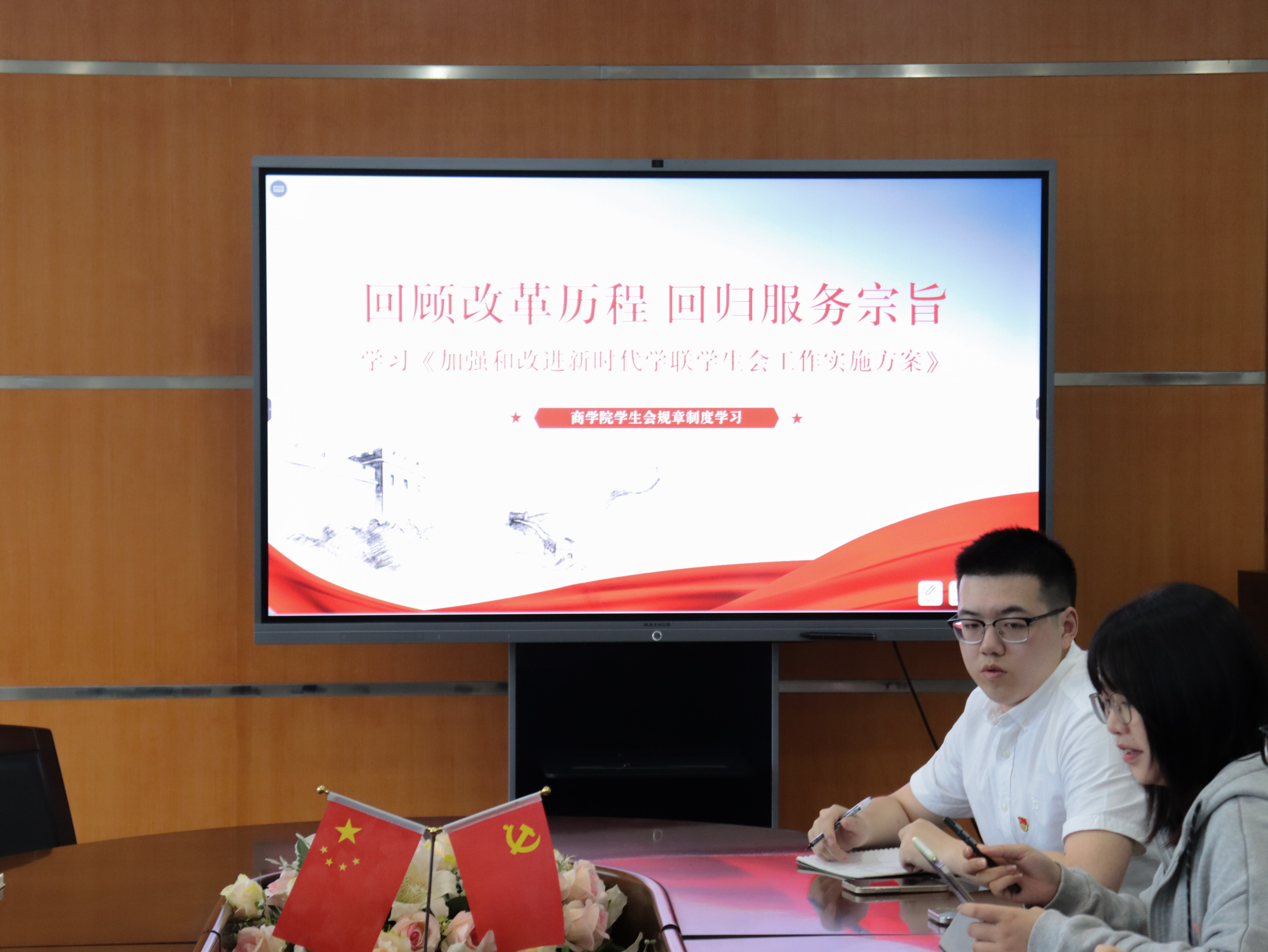 之后,员工会轮值主席王思涵同学从“回顾改革历程”“学习《加强和改进新时代学联员工会工作实施方案》”“回归服务宗旨”这三个方面讲述这次改革的具体措施及必要性。其中,王思涵同学提到,员工会要回归服务宗旨,科学瘦身健体,即代表覆盖优化、机构调整、人员精简;要坚持从严治会,培育清新组织文化即严格遴选程序,让监督起到最好的净化剂作用;要优化运行机制,接地气聚人气,即真切关心同学诉求;激发基层组织活力,让员工会赢得同学信赖,彰显组织价值。